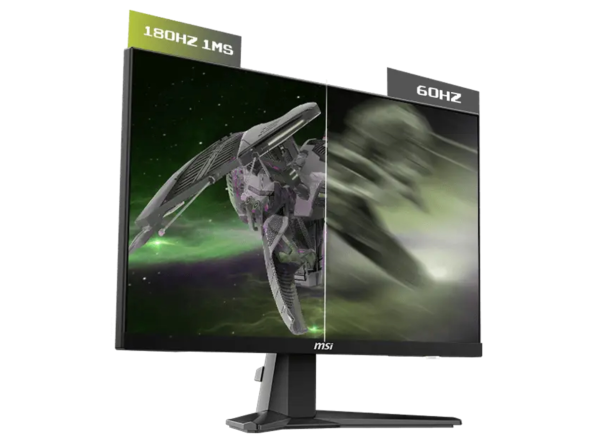 Der MSI MAG 256F ist mit einem Rapid IPS-Panel ausgestattet, das eine ultraschnelle Reaktionszeit von 1 ms bietet. Das Panel vermeidet Bildverzerrungen und minimiert Farbabweichungen, auch wenn du den Bildschirm aus verschiedenen Winkeln betrachtest. Die Kristallmoleküle des Rapid IPS-Displays reagieren viermal schneller als die herkömmlicher Displays.