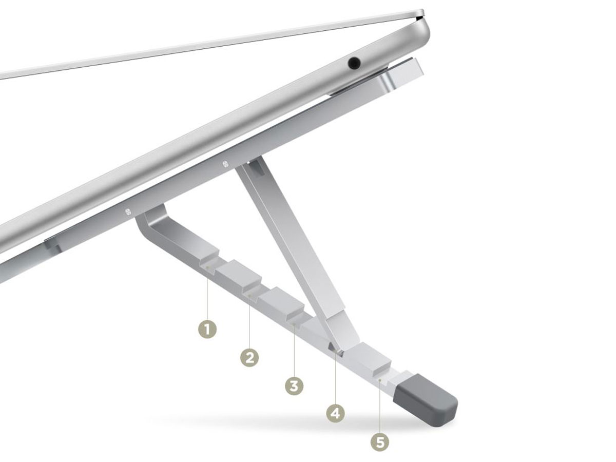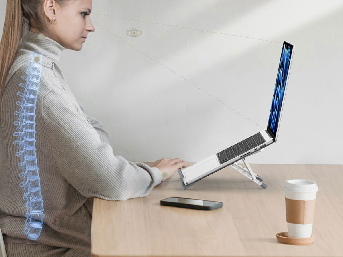 Der Ständer bietet eine 5-stufige Einstellung, damit du die Position deines Laptops an deine individuellen Bedürfnisse anpassen kannst. Dadurch kannst du die Nackenbelastung verringern und deinen Arbeitskomfort verbessern.