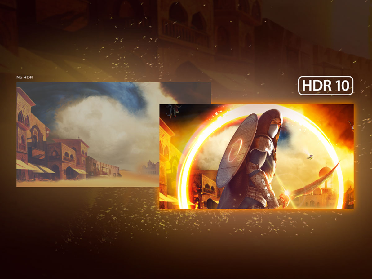 HDR10 ist hier, um die Bildqualität weiter zu verbessern, indem es die Synchronisation deiner Grafikkarte oder Konsole mit dem Monitor verbessert. Dies schafft ein realistischeres, immersives und flüssiges Spielerlebnis. Dadurch fühlst du dich, als würdest du Bild für Bild ins Spiel eintauchen.