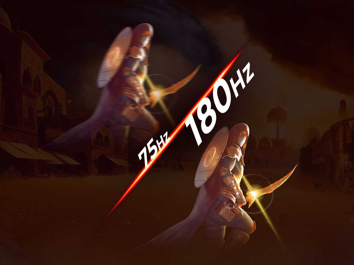 Wettbewerb und intensives Spielen erfordern die beste Technologie, um ein flüssigeres und verzögerungsfreies Spielerlebnis zu gewährleisten. Der AGON-Monitor von AOC zeichnet sich durch eine Bildwiederholrate von 180 Hz aus, was ihn dreimal schneller macht als ein Standarddisplay. Eine niedrigere Bildrate kann dazu führen, dass Gegner auf dem Bildschirm von Ort zu Ort springen, was sie zu sehr schwierigen Zielen macht. Die Bildrate von 180 Hz bringt die entscheidend fehlenden Bilder zurück auf den Bildschirm und zeigt die Bewegungen des Gegners in einer äußerst flüssigen Bewegung, was das Zielen erleichtert.