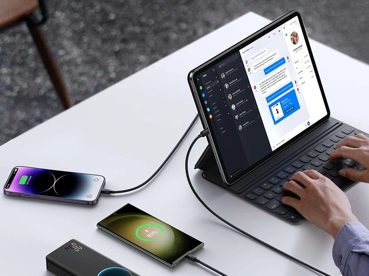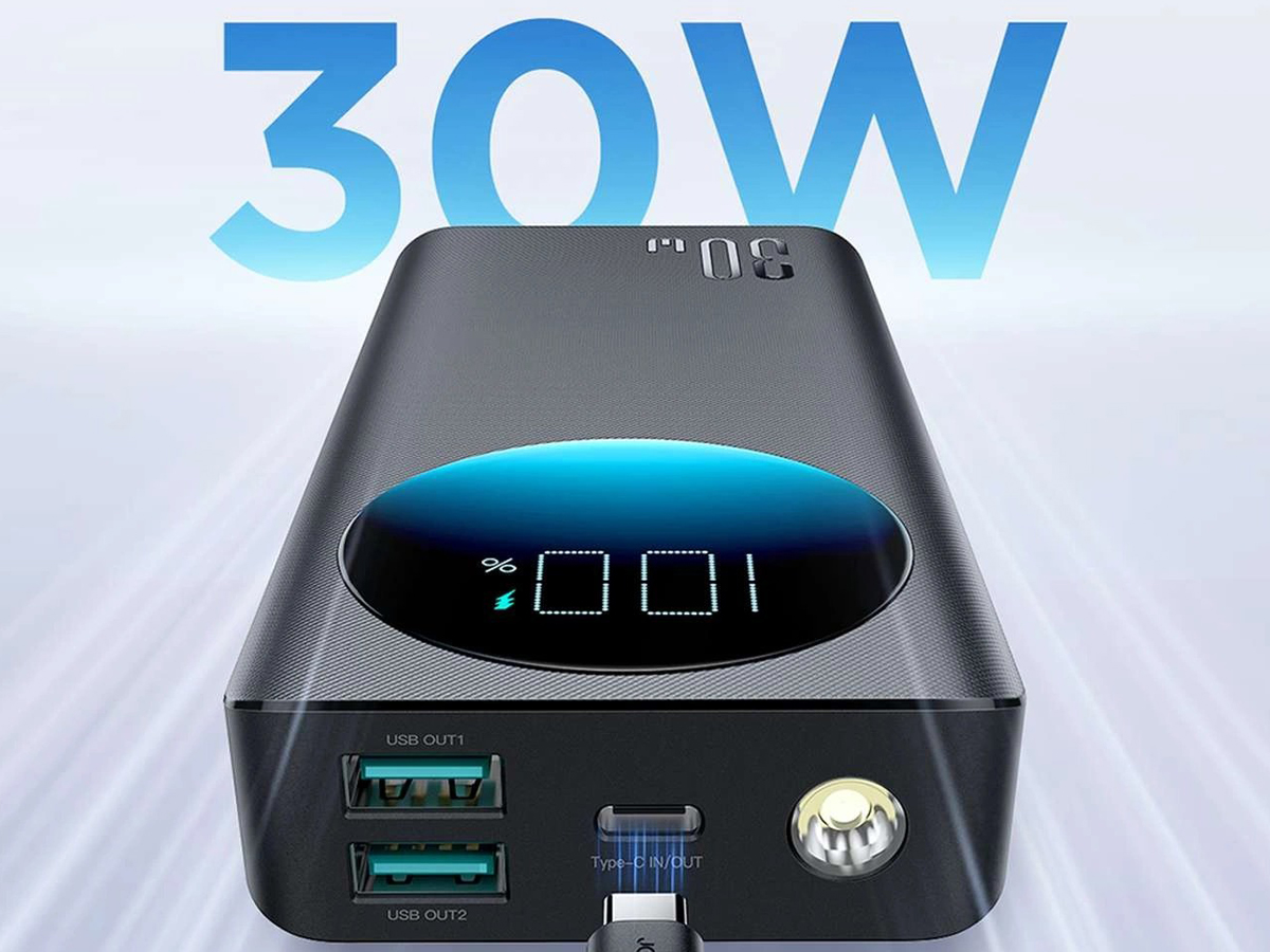 Hol dir zusätzliche Energie mit dem JoyRoom JR-PBF03 Powerbank mit 30000 mAh Kapazität. Dieses unverzichtbare Gerät ist perfekt für alle, die Mobilität ohne Sorgen über leere Batterien schätzen. Mit Power Delivery Technologie lädt es schnell Telefone, Tablets und sogar Laptops. Die Ausgänge ermöglichen das gleichzeitige Laden von drei Geräten und unterstützen PD3.0 und QC3.0 für schnelles Laden.
