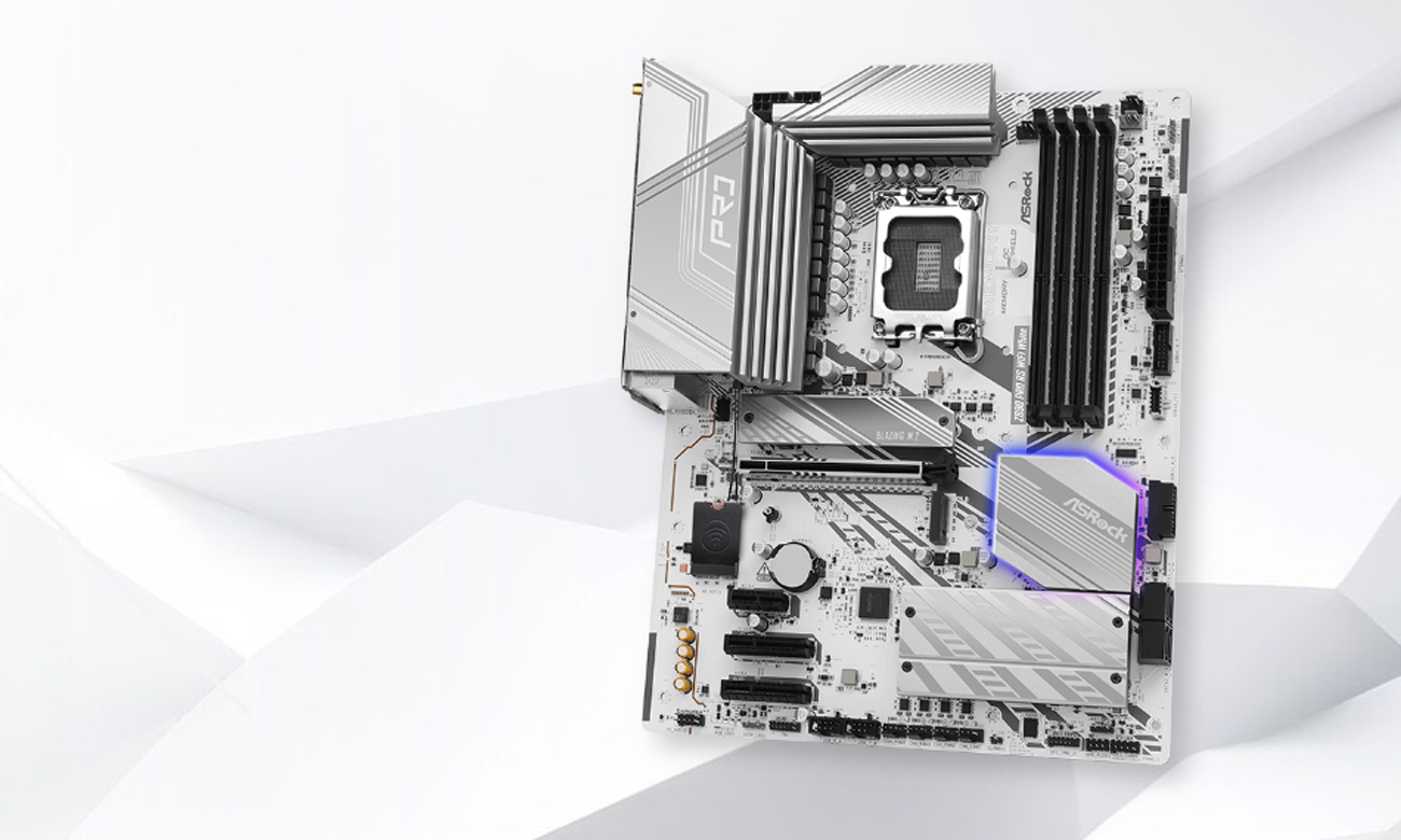 ASrock Z890 Pro RS WiFi White bietet umfangreiche Möglichkeiten zur Datenspeicherung. Es ist mit vier SATA3-Ports, einem Blazing M.2 (PCIe Gen5 x4) Steckplatz und drei Hyper M.2 (PCIe Gen4 x4, darunter eines mit SATA3-Unterstützung) ausgestattet. Der untere M.2-Kühlkörper leitet die Wärme effektiv ab und sorgt für Stabilität und Langlebigkeit der SSDs. Dadurch können Benutzer einen reibungslosen Datenzugriff und eine hohe Systemleistung genießen.