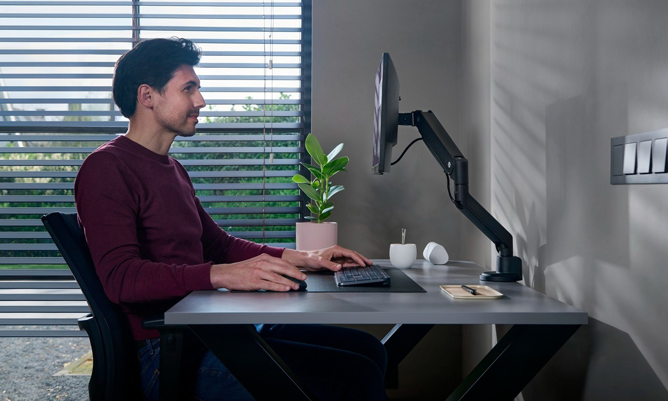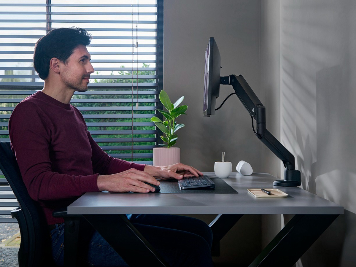 Die DM4110-Halterung verfügt über ein Kabelmanagement-System, das Ordnung auf dem Schreibtisch schafft. Die Kabel werden entlang des Halterungsarms geführt, wodurch Kabelsalat vermieden wird und der Arbeitsplatz aufgeräumt und elegant aussieht. Diese praktische Lösung erleichtert die Organisation des Arbeitsplatzes und sorgt dafür, dass dein Schreibtisch jeden Tag ordentlich bleibt.
