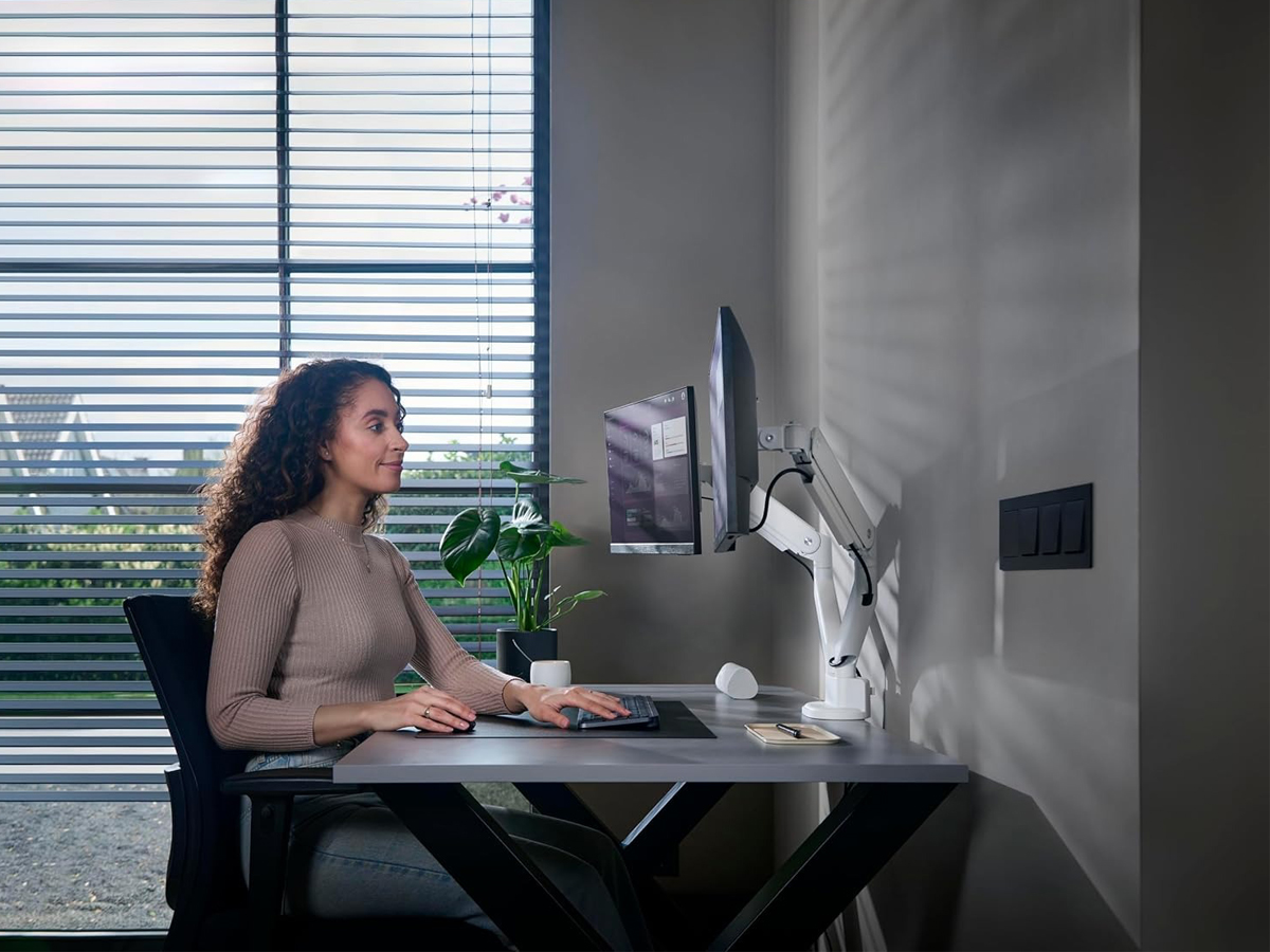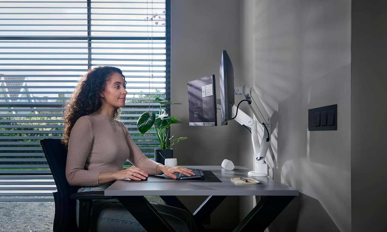 Dank des integrierten Kabelmanagementsystems hilft der DM4220, Ordnung am Arbeitsplatz zu halten. Die Kabel werden entlang des Halterungsarms geführt, was Kabelsalat eliminiert und die Ästhetik des Raumes verbessert. Es ist eine praktische Lösung für jeden, der einen ordentlichen und funktionalen Schreibtisch schätzt. Das Kabelmanagementsystem sorgt dafür, dass Ihr Arbeitsplatz immer organisiert ist.