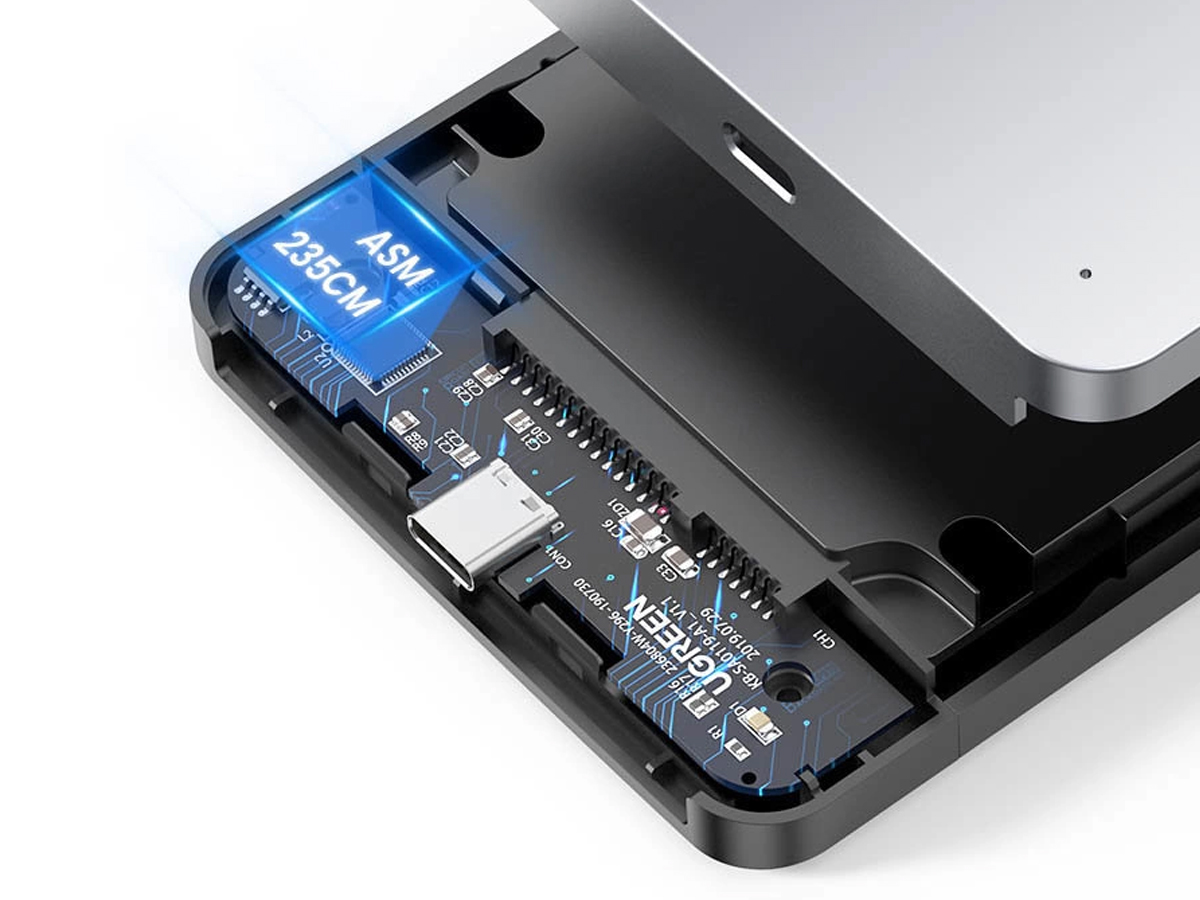 Das UGREEN CM300 Festplattengehäuse ist die perfekte Wahl, um alte SATA III/II/I HDDs und SSDs als externe Datenträger zu nutzen. Mit diesem Gehäuse können Sie alte Festplatten problemlos in Betrieb nehmen, den Speicher Ihres Computers aufrüsten, Festplatten klonen, Daten von ausgemusterten Laptops wiederherstellen und den Speicher erweitern. Im Set ist ein 0,5 m langes USB-C - USB-A Kabel enthalten.