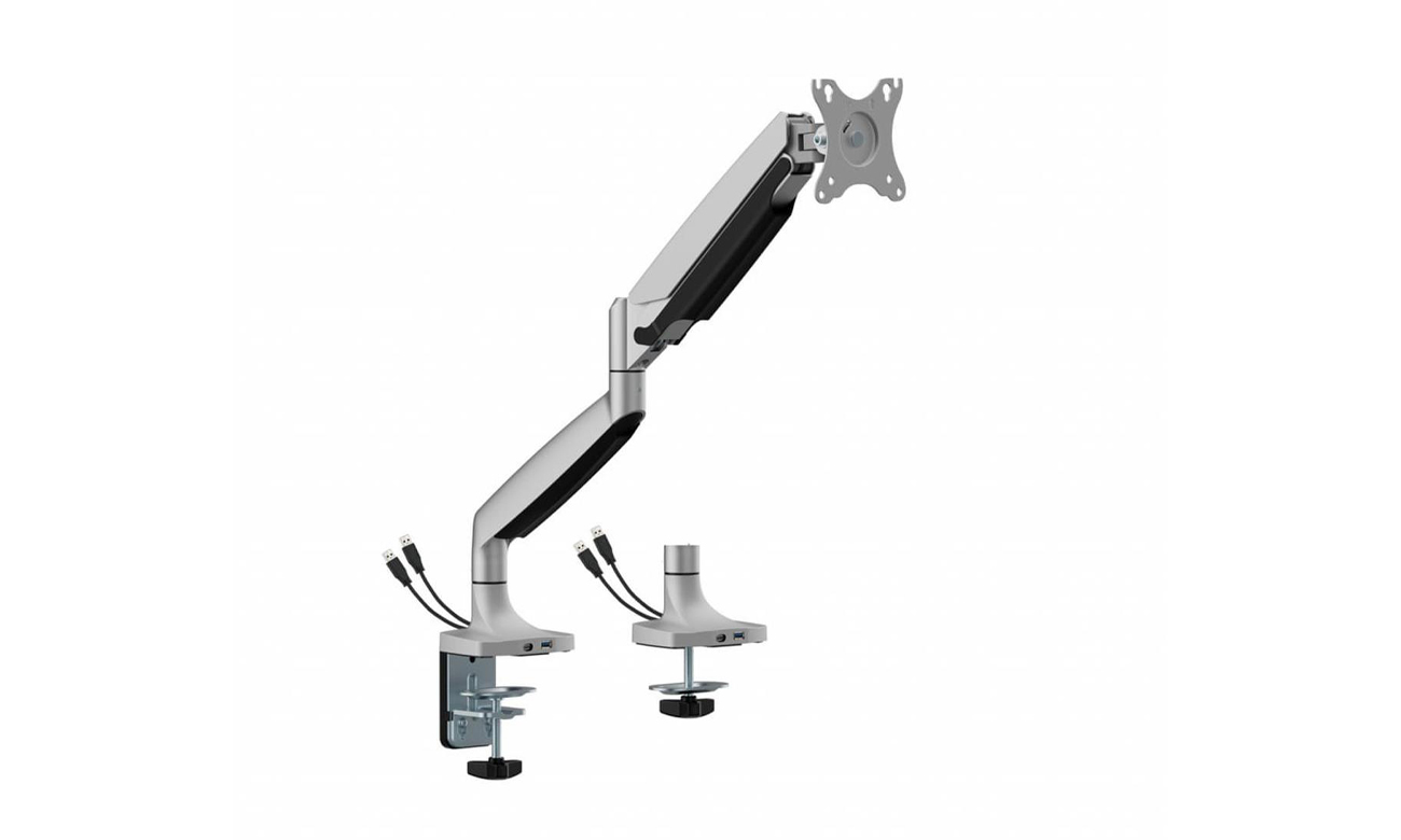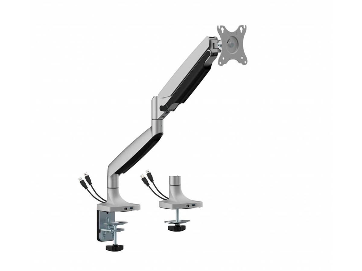 Der ART L-35HD bietet Freiheit bei der vertikalen und horizontalen Einstellung, sodass Sie den Bildschirm im idealen Winkel positionieren können. Sie können den Monitor um 90 Grad nach links und rechts drehen und im Bereich von -15 bis 15 Grad neigen. Zusätzliche USB-C- und USB 3.0-Anschlüsse erleichtern das Anschließen von Geräten und erhöhen die Funktionalität des Arbeitsplatzes. Mit der ART L-35HD Halterung haben Sie die volle Kontrolle über den Benutzerkomfort.