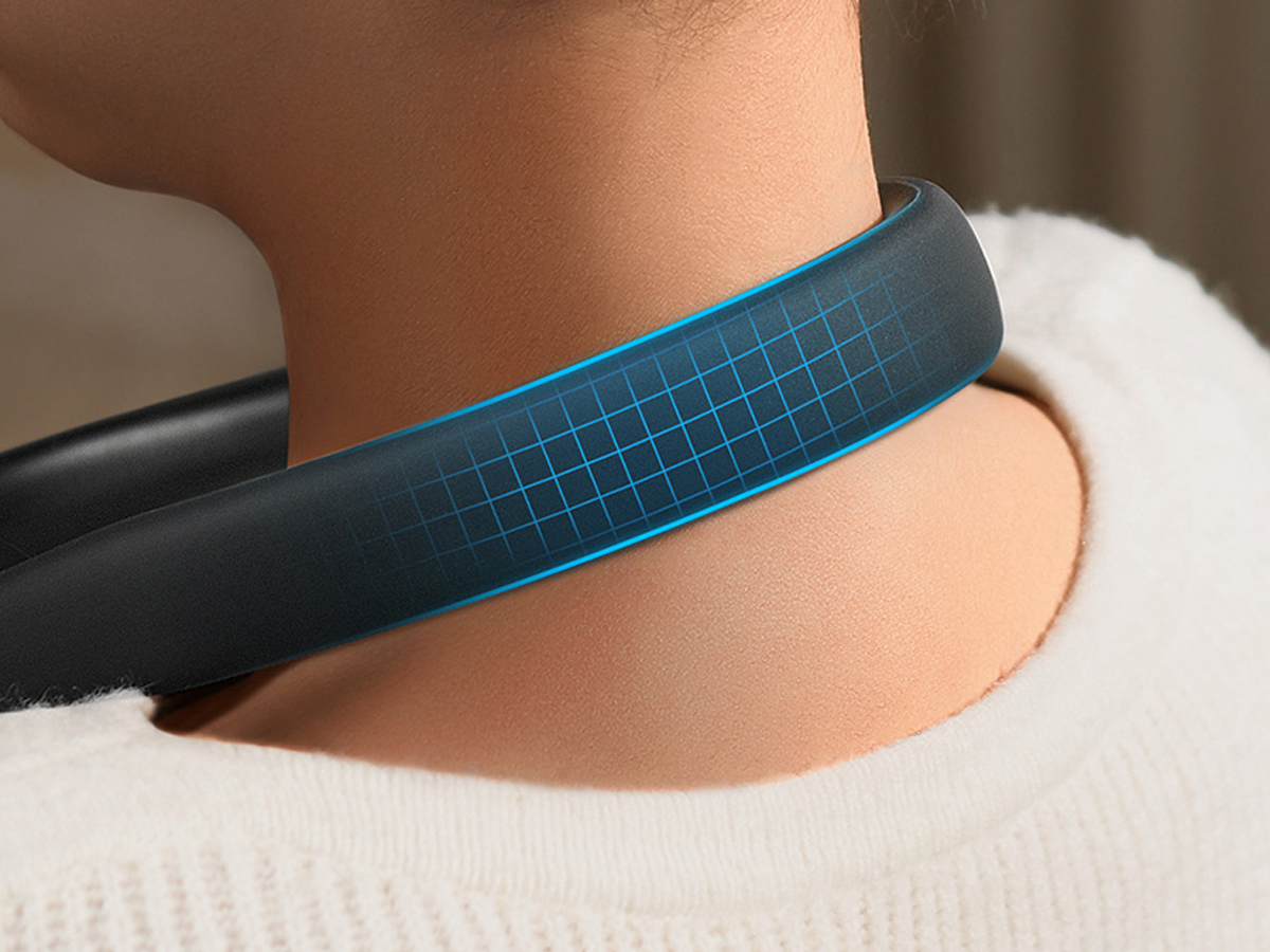 Der Kragen, den Sie um den Hals hängen können, besteht aus hautfreundlichen Materialien, die keine Reizungen verursachen. Seine ergonomische Form sorgt dafür, dass er keinen unangenehmen Druck auf den Nacken ausübt. Darüber hinaus hat er an der Kontaktstelle mit dem Brustbein einen weichen Schaumstoff, sodass Sie Filme ansehen oder Videoanrufe führen können, ohne sich unwohl zu fühlen.