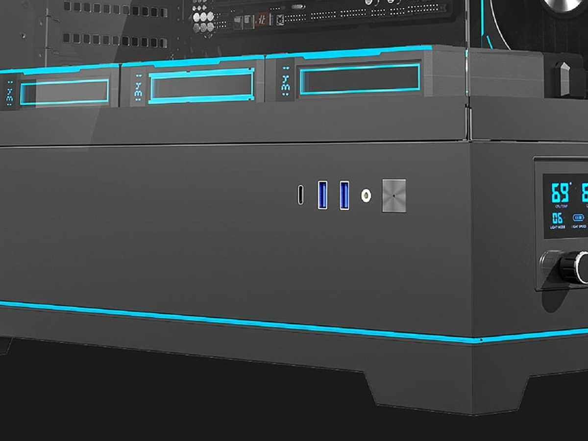 Das Gehäuse verfügt über zwei USB 3.0-Ports und einen USB-C 3.2 Gen 2-Port, der einen schnellen Datentransfer mit einer Geschwindigkeit von bis zu 10 Gbit/s ermöglicht. Die sich auf dem Frontpanel befindlichen Ports erleichtern die tägliche Nutzung von Geräten und gewährleisten die Kompatibilität mit den neuesten Zubehörteilen.