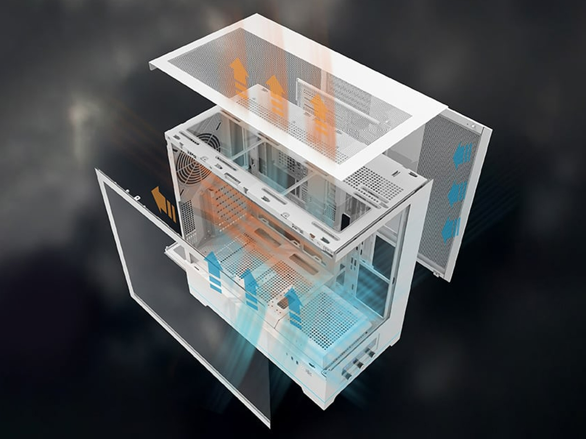 Das Gehäuse bietet eine fortschrittliche ARGB-Beleuchtung mit 23 vordefinierten Modi und Geschwindigkeitsstufen, die an die eigenen Vorlieben angepasst werden können. Mit einem einzigen Knopfdruck können Sie die Beleuchtung ausschalten oder zwischen Effekten wechseln, um Ihrem Computersetup einen einzigartigen Charakter zu verleihen.