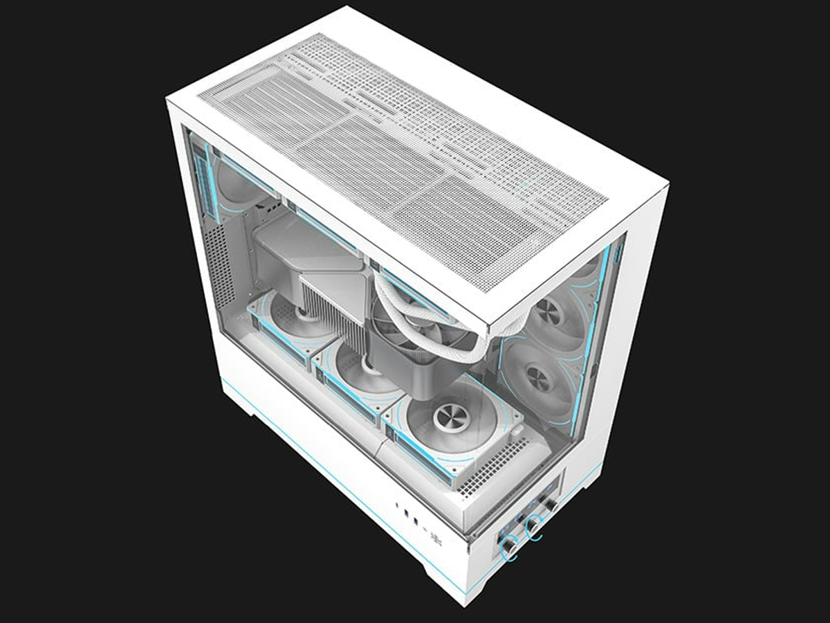 Das DY451 PRO unterstützt die Montage von bis zu 8 Lüftern und Wasserkühlungen mit einer Länge von bis zu 360 mm, was eine außergewöhnliche Leistung auch bei intensiver Arbeit gewährleistet. Das Gehäuse bietet zudem Platz für Grafikkarten mit einer Länge von bis zu 420 mm und CPU-Kühler mit einer Höhe von bis zu 180 mm, was es für umfangreiche Gaming-Konfigurationen geeignet macht.