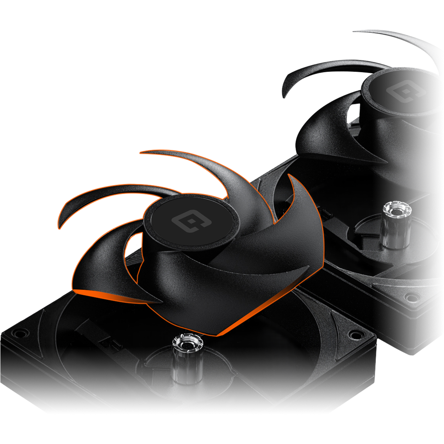 Optimiertes Rahmen-Design in Kombination mit neuer Flügel-Form sorgt für ein perfektes Gleichgewicht zwischen Leistung und leisem Betrieb. Der Lüfter bietet eine hohe Kühlleistung bei maximal 24 dB Geräuschpegel bei 1800 U/min.