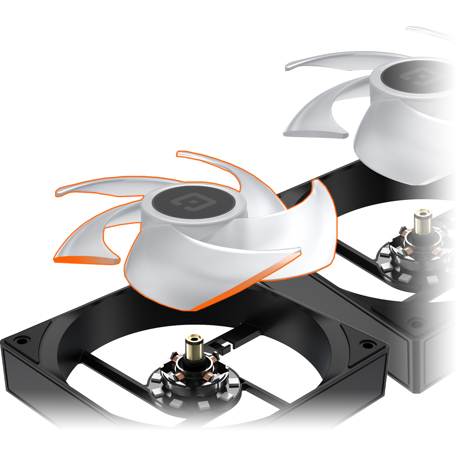 Optimierte Rahmenkonstruktion in Kombination mit neuer Flügelgeometrie sorgt für ein perfektes Gleichgewicht zwischen Leistung und leisem Betrieb. Der Lüfter bietet eine hohe Kühlleistung bei maximal 24 dB(A) Geräuschpegel bei 1800 U/min.