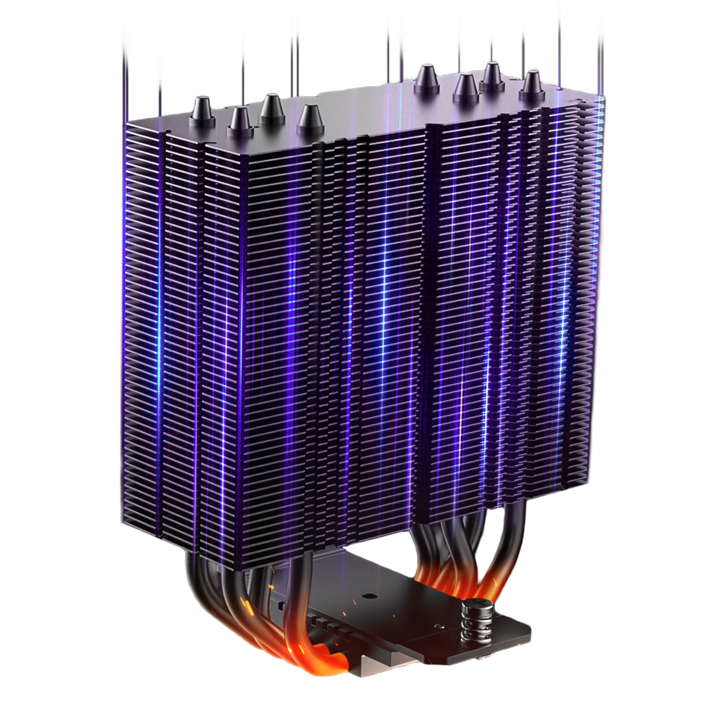 Vier fortschrittliche Heatpipes mit 6 mm Durchmesser maximieren die Wärmeleitung. Präzise angeordnete Rippen sorgen für eine schnelle Energieabfuhr, was eine hohe Kühlleistung und niedrigen thermischen Widerstand gewährleistet.