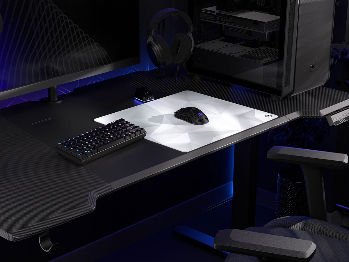 Wasserabweisender Stoff mit einzigartigem Kristallmuster, bedruckte Umrandung, rutschfeste Unterseite – alles, was du von einem gut gemachten Mauspad brauchst, um dynamische und präzise Bewegungen auszuführen. Das ENDORFY Crystal Onyx White L bringt frischen Stil auf deinen Schreibtisch.