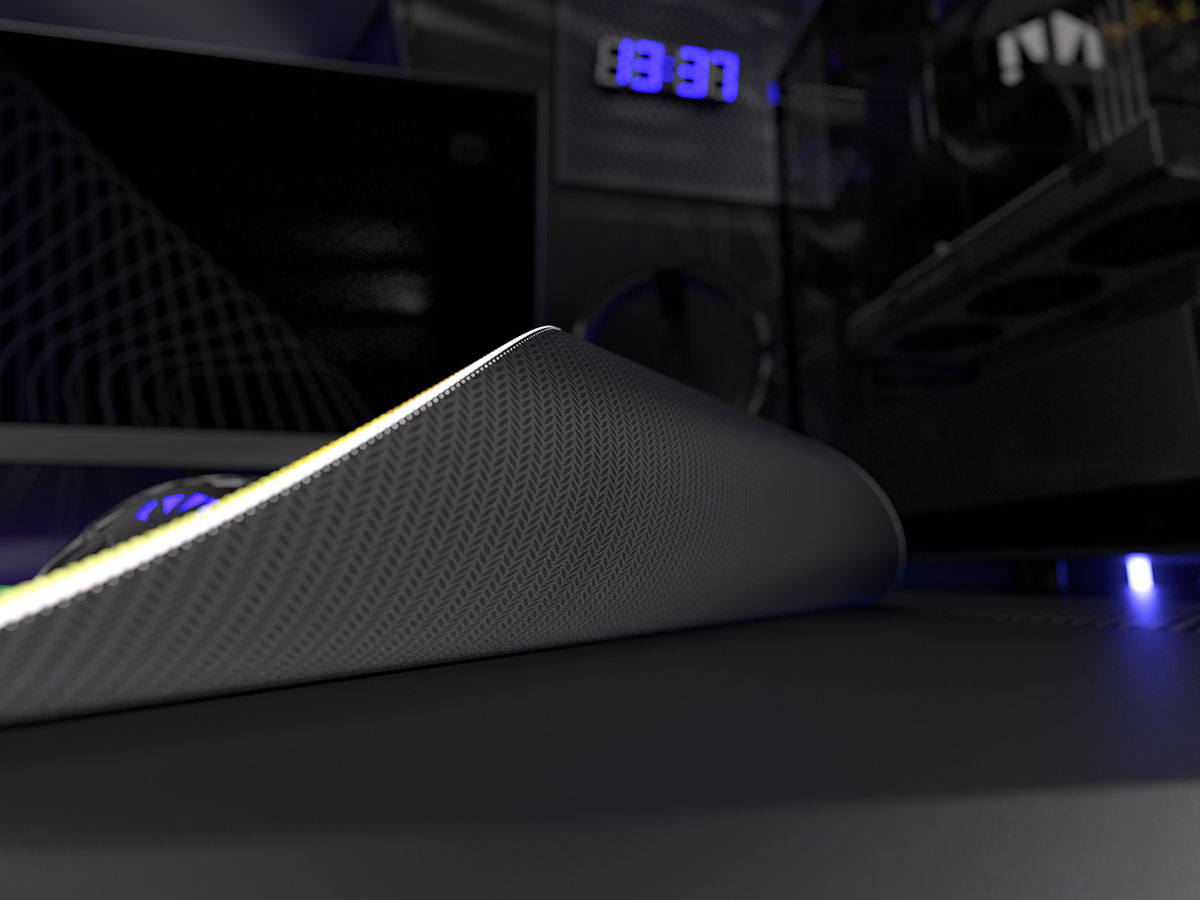 Beim ENDORFY Crystal Spectrum L wurde sogar auf die Ränder geachtet. Die farbige Naht harmoniert mit dem aufgedruckten Muster. Sie sorgt außerdem dafür, dass die Kanten nicht wie bei einfachen Mauspads ohne Randveredelung schnell abnutzen.