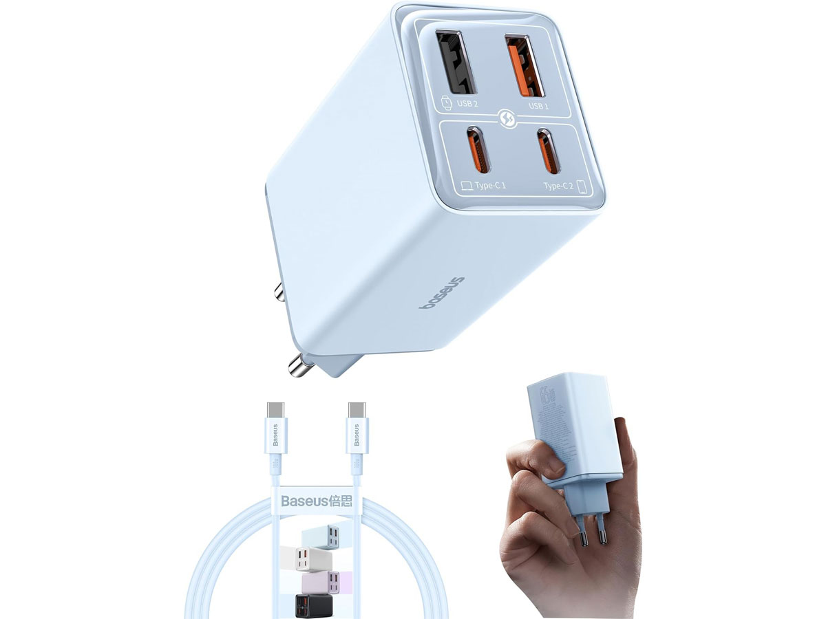Das Baseus GaN6 Pro ist ein kompaktes und leistungsstarkes Ladegerät, das es ermöglicht, bis zu vier Geräte gleichzeitig zu laden. Ausgestattet mit zwei USB-C- und zwei USB-A-Anschlüssen, bietet es schnelles und problemloses Laden von Laptops, Smartphones und Tablets. Es unterstützt Schnellladetechnologien wie Power Delivery 3.0, Quick Charge 4.0+/3.0, SCP, AFC und Galaxy PPS. Mit einer Leistung von 65 W können Sie ein MacBook Pro 16" in nur 30 Minuten von 0% auf 48% aufladen. Es ist die ideale Lösung für Zuhause, Arbeit und Reisen.