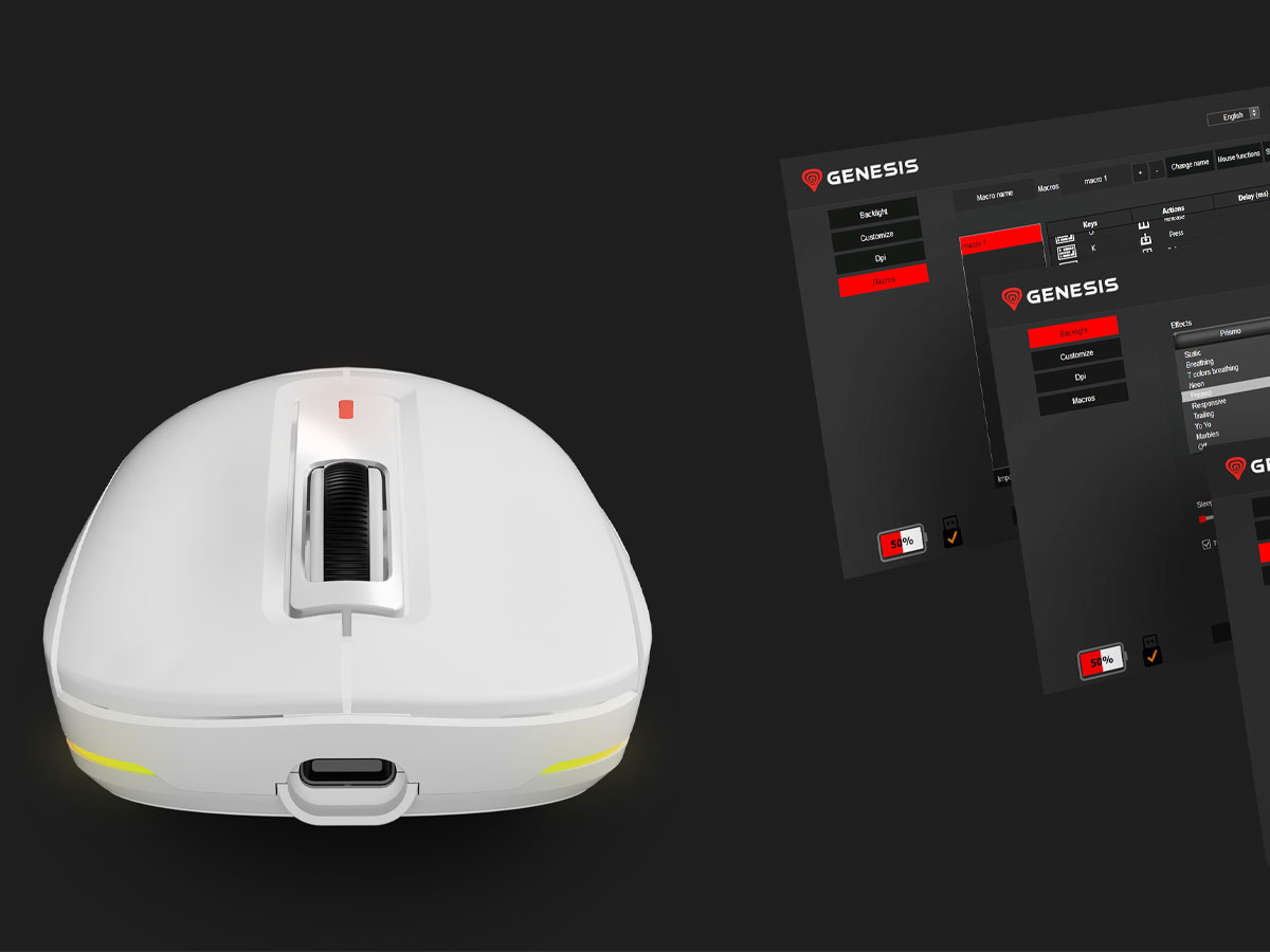 GENESIS Zircon 660 Pro ist mit einem noch geringeren Gewicht von nur 57 Gramm ausgestattet. Was bedeutet das in der Praxis? Mehr Stabilität beim Anheben und eine deutlich schnellere Reaktion. Dieses niedrige Gewicht wurde durch einen speziell entwickelten Rahmen, sorgfältig ausgewählte Materialien und Aussparungen auf der Unterseite erreicht. Alles, um dein Gameplay komfortabler zu machen.