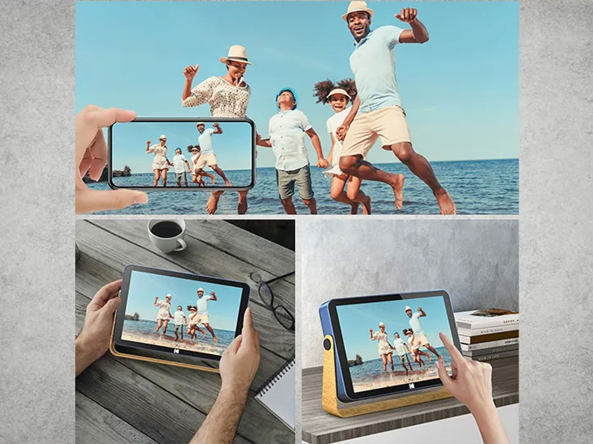 Mit der KODAK Digital Frame App können Sie Fotos ganz einfach direkt an jeden angeschlossenen KODAK digitalen Bilderrahmen senden, unabhängig von dessen Standort. Diese Lösung ermöglicht es, Lieblingsmomente in Echtzeit mit Ihren Lieben zu teilen, unabhängig von der Entfernung. Alles, was Sie brauchen, ist eine Internetverbindung, und Ihre Fotos können im Handumdrehen auf dem Bildschirm des Rahmens erscheinen, was eine einzigartige Möglichkeit bietet, mit Familie und Freunden in Kontakt zu bleiben.