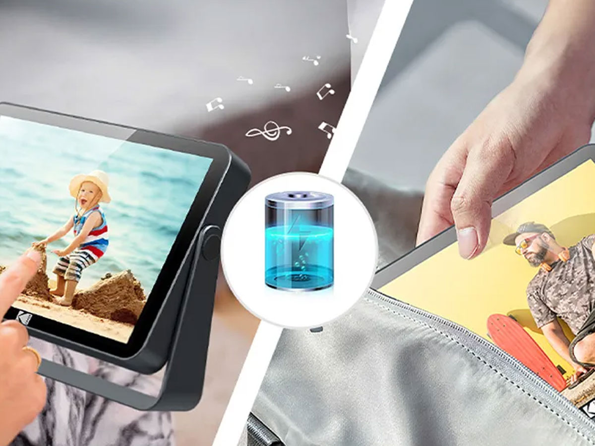 Der digitale Bilderrahmen verfügt über einen eingebauten Akku, der ihn zu einem besonders tragbaren Gerät macht. Sie können Ihre Lieblingsfotos und -videos überallhin mitnehmen, unabhängig von der Stromversorgung. Dies ist eine hervorragende Lösung für Familientreffen, Präsentationen oder Reisen, bei denen Sie Erinnerungen einfach und bequem teilen möchten.