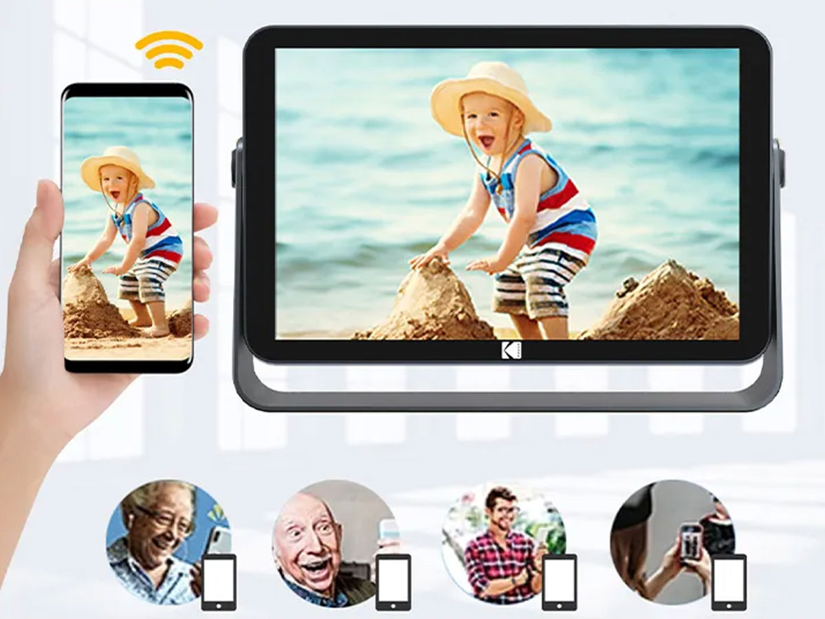 Der digitale Bilderrahmen RWF-108V von Kodak ist ein modernes Gerät mit einem 10,1 Zoll Touchscreen, das es ermöglicht, Fotos und Videos in hoher Qualität anzuzeigen. Der Bildschirm, der in IPS-Technologie mit einer Auflösung von 1920x1200 hergestellt ist, bietet außergewöhnliche Klarheit und Lesbarkeit des angezeigten Bildes.