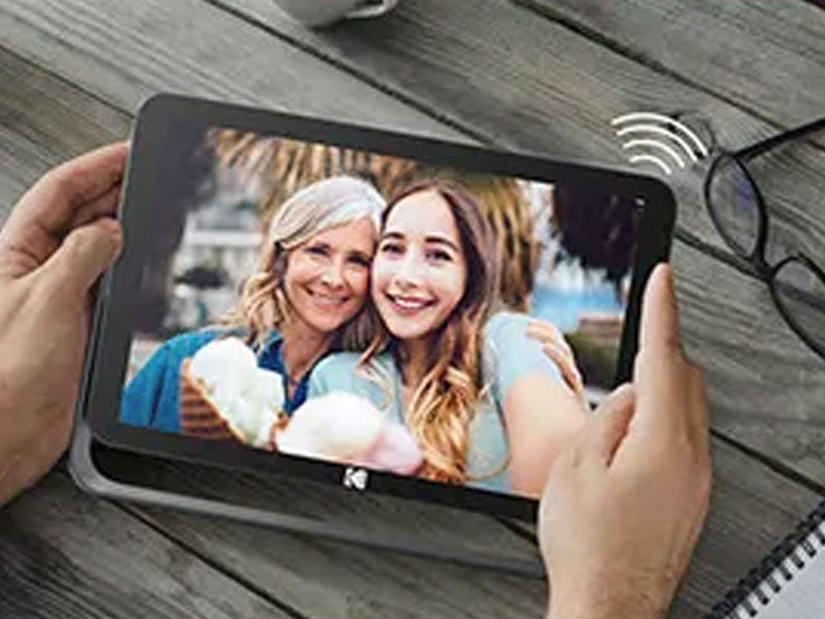 Mit der KODAK Digital Frame App können Sie Fotos ganz einfach direkt an jeden angeschlossenen KODAK digitalen Bilderrahmen senden, unabhängig von dessen Standort. Diese Lösung ermöglicht es, Lieblingsmomente in Echtzeit mit Ihren Lieben zu teilen, unabhängig von der Entfernung. Alles, was Sie brauchen, ist eine Internetverbindung, und Ihre Fotos können im Handumdrehen auf dem Bildschirm des Rahmens erscheinen, was eine einzigartige Möglichkeit schafft, mit Familie und Freunden in Kontakt zu bleiben.