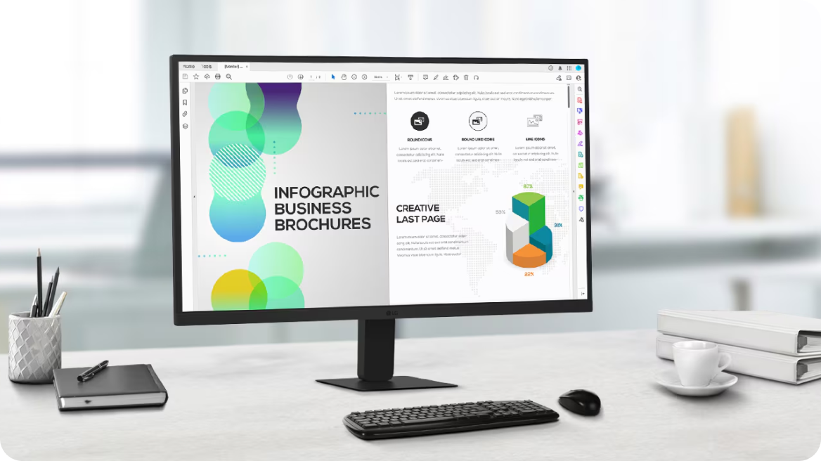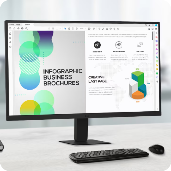 Der LG QHD-Monitor (2560 x 1440) mit IPS-Technologie sorgt für klare und konsistente Farben. Er bietet lebendige Farbdarstellung und kann den Bildschirm aus einem weiten Winkel betrachten.