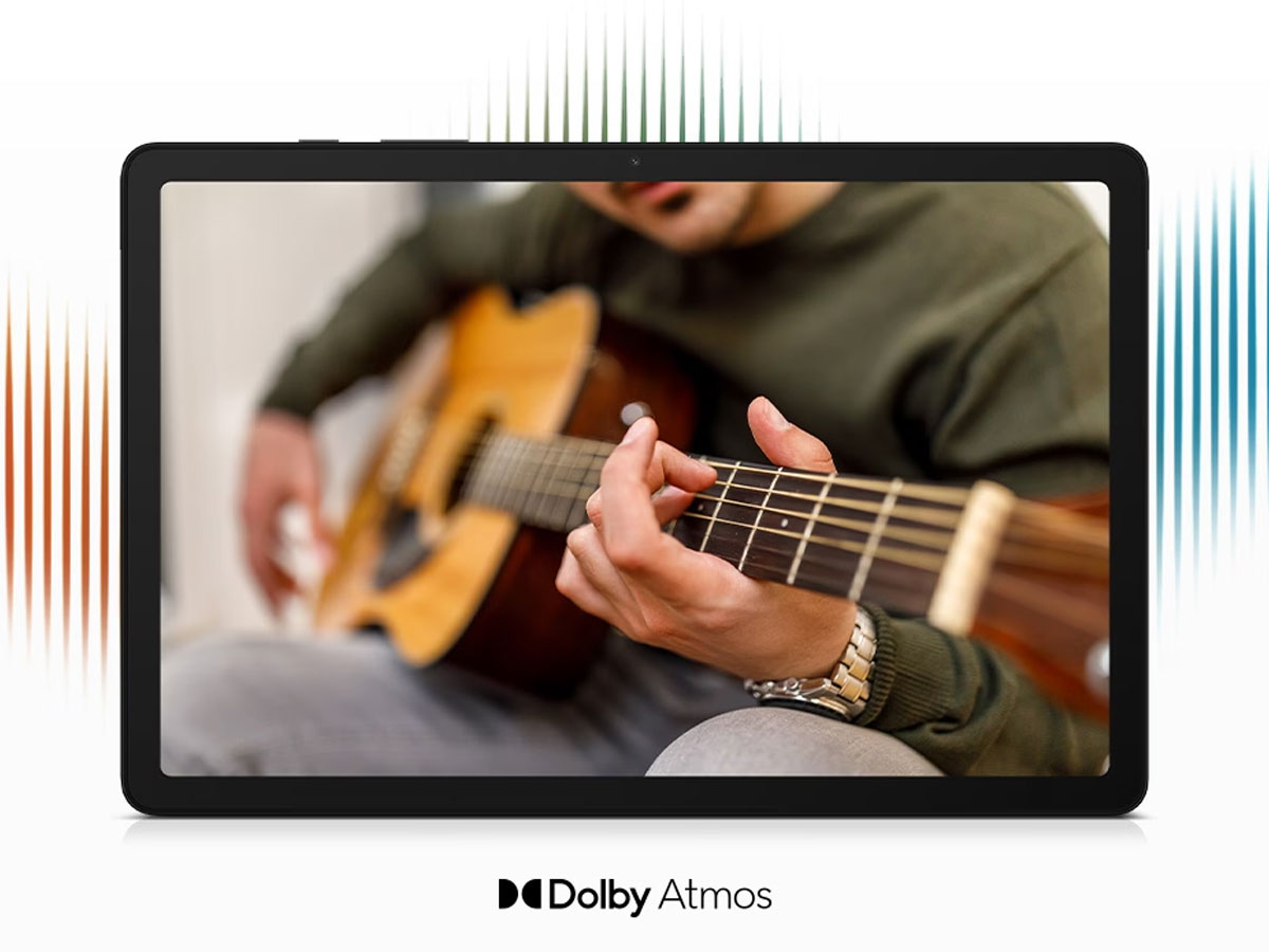 Genießen Sie den außergewöhnlichen Klang des Galaxy Tab A9+. Dank fortschrittlicher Lautsprecher liefert dieses Tablet räumliche und detailreiche Klangeffekte. Egal, ob Sie Filme schauen oder Musik hören, Sie tauchen in einen dreidimensionalen Klang mit außergewöhnlicher Klarheit und Tiefe ein.