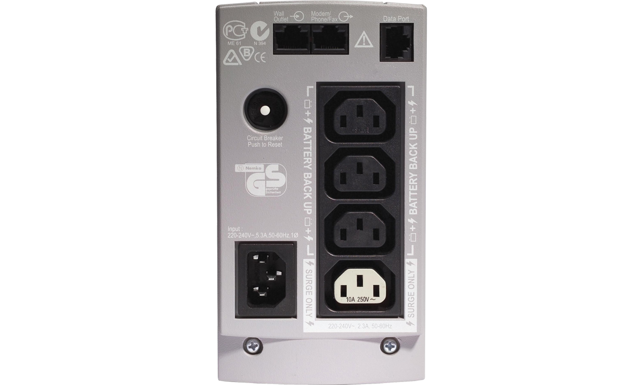 USV-System mit Überspannungsschutz für elektronische Geräte und Computer, Ausgänge mit Batteriepuffer und Überspannungsschutz schützen Sie Ihre Hardware bei Netzstromausfällen, Überspannungen und Spannungsspitzen. Ausgänge nur mit Überspannungsschutz schützen Sie weitere elektronische Systeme gegen Überspannungen und Spannungsspitzen, ohne die Batterielebensdauer zur Unterstützung der wichtigsten Systeme einzuschränken.