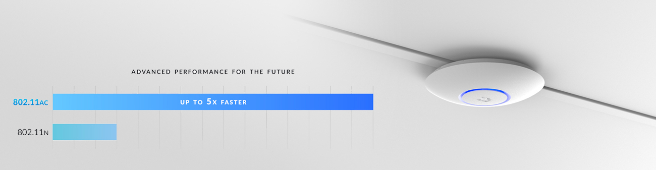 Das UniFi AP AC PRO Gerät ermöglicht gleichzeitige Verbindungen auf zwei Frequenzen mit 3x3 MIMO-Technologie.