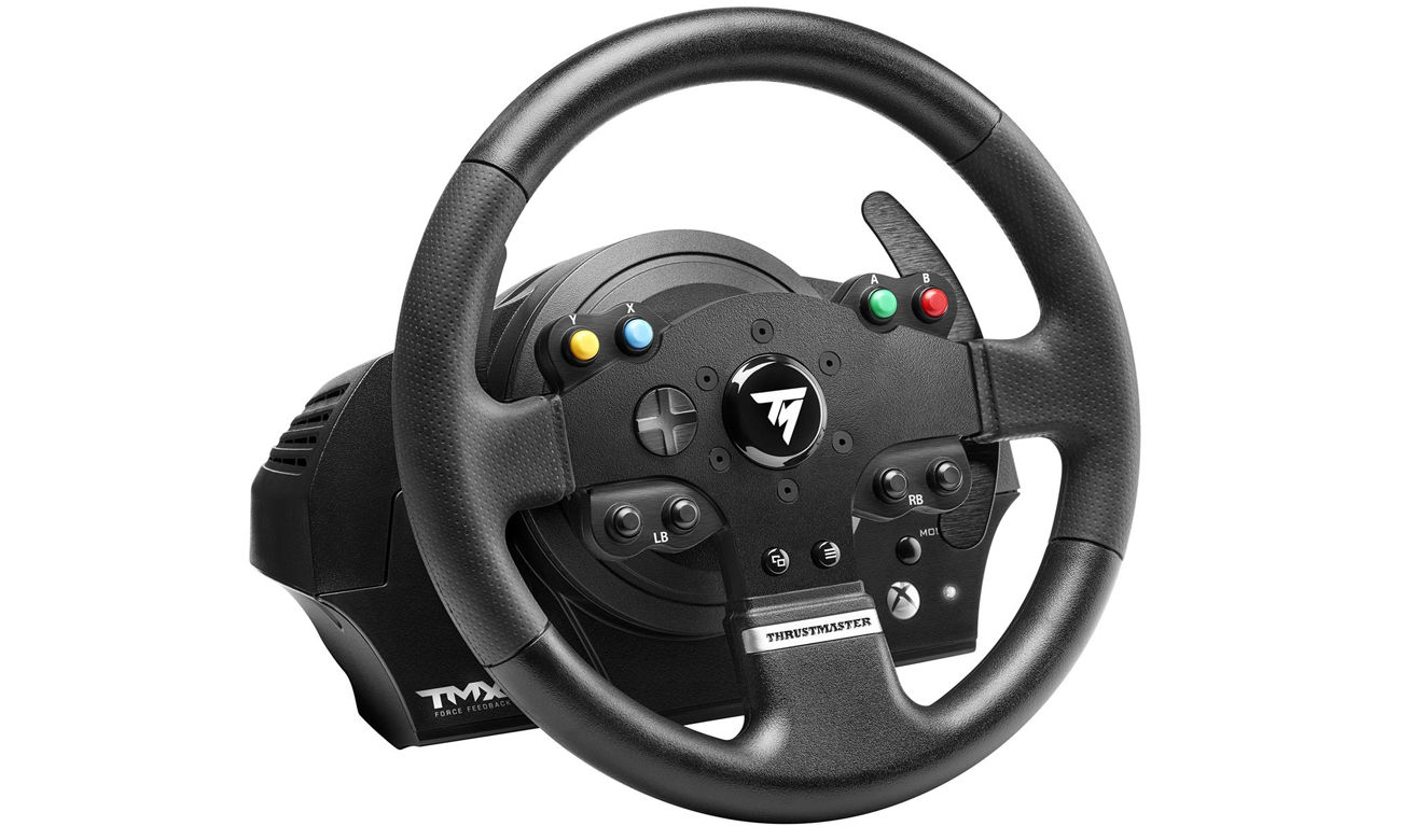 Der Thurstmaster TMX Force Feedback ist ein kabelgebundenes Lenkrad mit unglaublicher Sensibilität. Er ist mit 12 Tasten ausgestattet, die intuitiv angeordnet sind und eine vollständige Steuerung ermöglichen. Zusätzlich verfügt das Lenkrad über eine separate Pedalplattform. Das Lenkrad hat einen Durchmesser von 28 Zentimetern, wodurch du das Gefühl hast, ein echtes Auto zu fahren. Die gummierte Oberfläche bietet einen präzisen und sicheren Griff und maximalen Komfort.