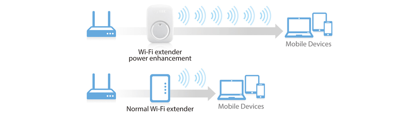 Der ZyXEL WRE2206 Signalverstärker ermöglicht es, die Reichweite deines drahtlosen Heimnetzwerks zu erweitern, auch in Bereiche, die zuvor nicht erreicht wurden. Der WRE2206 ist so optimiert, dass er das bestmögliche drahtlose Signal mit einer um 30% größeren Reichweite als herkömmliche Verstärkergeräte liefert. Ein WPS-Knopf ermöglicht eine einfache Verstärkung des drahtlosen Signals, während LED-Anzeigen die Installation des Verstärkers an der optimalsten Stelle gewährleisten.