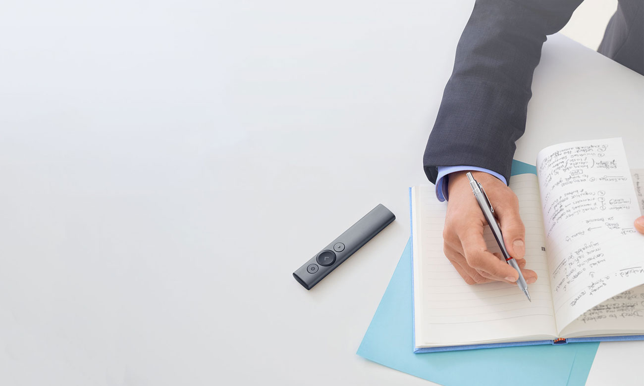 Gehen Sie bei Ihrer nächsten Geschäftspräsentation über das herkömmliche Laserzeigen hinaus. Das fortschrittliche Zeigersystem des Spotlight Plus Präsenters ermöglicht präzises Hervorheben oder Vergrößern interessanter Bereiche bis auf einen Pixel genau. Der hervorgehobene Bereich ist sowohl für die Teilnehmer im Besprechungsraum als auch für Geschäftsteams, die an einer Videokonferenz teilnehmen, deutlich sichtbar. Stellen Sie den Zeigermodus mit der benutzerfreundlichen Logitech Presentation App ein.