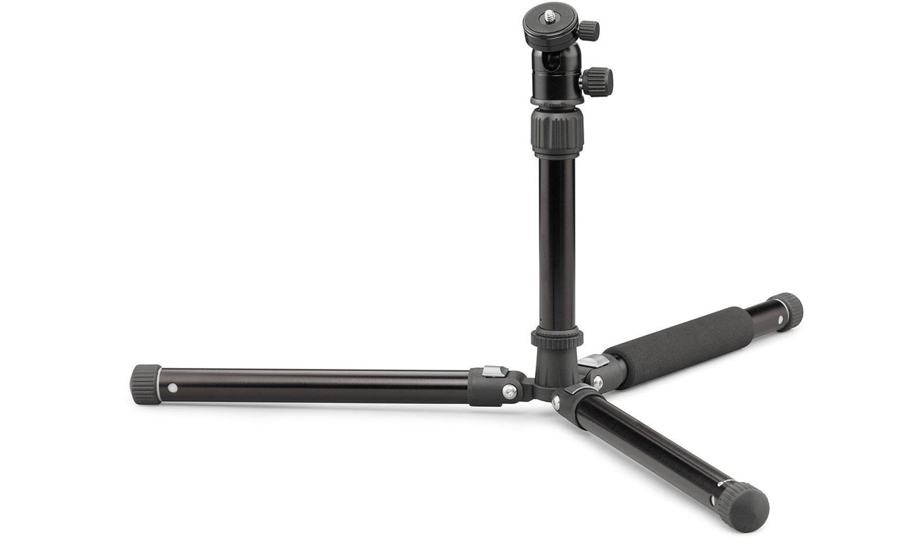 Die Stativbeine haben eine 3-stufige Winkelverstellung, was es zur idealen Lösung für die Makrofotografie macht. Der Teleskopauszug der Beine ermöglicht ein schnelles Aufstellen des Stativs in die Arbeitsposition. Die ausziehbare vertikale Säule ist mit einem Metallkarabinerhaken versehen, um das Stativ zu beschweren.