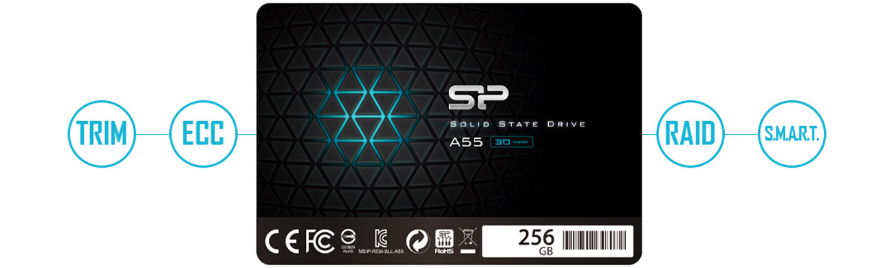 Die A55 ist beneidenswert leicht und schlank, dabei aber schock- und vibrationssicher, da sie keine beweglichen Teile enthält. Und smart noch dazu, denn sie unterstützt S.M.A.R.T. (Self-Monitoring, Analysis and Reporting Technology) für effiziente Selbstüberwachung. Hohe Sicherheit und Verlässlichkeit bei der Datenübertragung werden außerdem durch eingebaute ECC-Funktion (error correction code) gewährleistet.