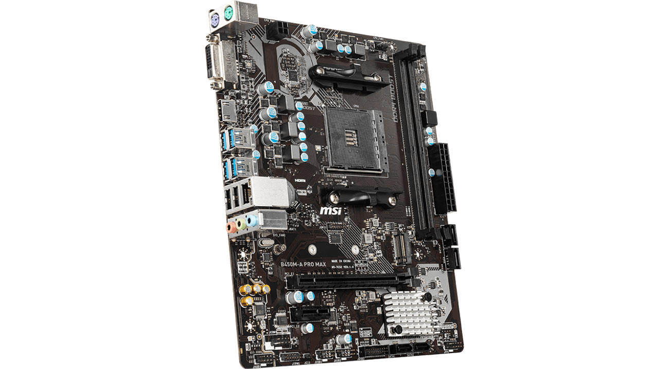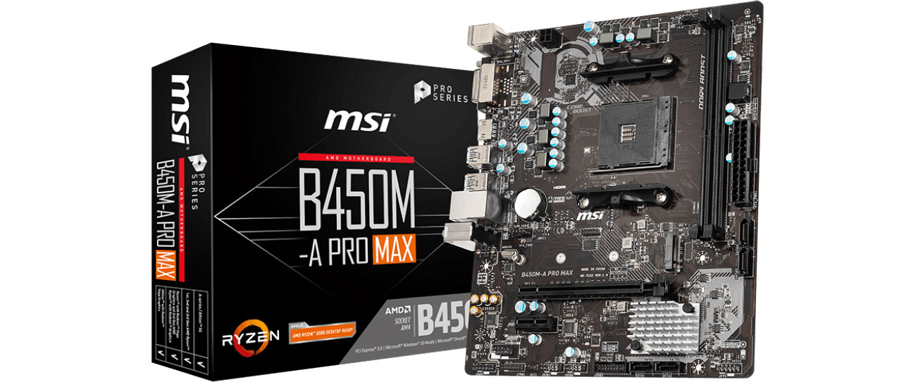 Greife nach dem für Profis erstellten Mainboard MSI B450M-A PRO MAX. Nutze die Leistung der AMD Ryzen Prozessoren der 1., 2. und 3. Generation, unterstützt durch die Core Boost Technologie, sowie DDR4 RAM-Module mit einer Taktrate von bis zu 4133 MHz (OC), um hohe Leistung in Spielen und professionellen Anwendungen zu genießen. Du kannst auch die in die Prozessoren integrierten AMD Vega Grafikeinheiten nutzen.