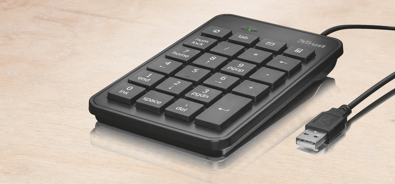 Wenn Sie mit Zahlen arbeiten müssen und Ihr Laptop keine numerische Tastatur hat, kommt die Trust Xalas Numeric zur Hilfe. Dieses kompakte Zubehör ergänzt jede nicht vollwertige Tastatur und verbessert effektiv Ihren Arbeitskomfort. Die Trust Xalas Numeric ist mit 23 flachen Tasten (davon 5 Funktionstasten) ausgestattet, die präzises und schnelles Arbeiten ermöglichen. Das Gerät muss nur an einen USB-Anschluss angeschlossen werden. Das 1,5 m lange Kabel ermöglicht eine bequeme Platzierung der Xalas Numeric neben der Tastatur.