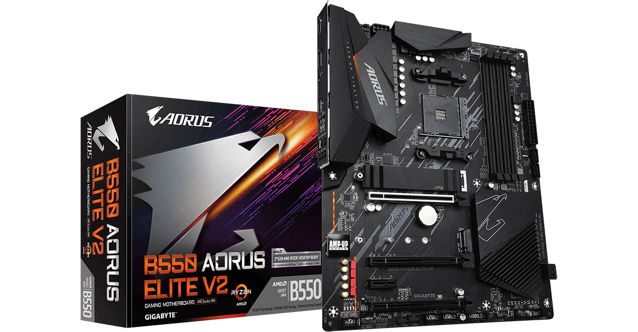 Wie viele Gigabyte Mainboards nutzt das Modell B550 AORUS Elite V2 die Ultra Durable-Technologie, einschließlich eines mit Metall verstärkten PCI-E-Slots. Das Mainboard verfügt auch über das Smart Fan 5-System: ein Set aus 6 Temperatursensoren und 5 Lüfteranschlüssen, die volle Kontrolle über die Kühlung des Computers ermöglichen. Über die Temperaturen der robusten Stromversorgungssektion wacht ein System aus massiven Kühlkörpern und einer mehrlagigen PCB mit einem zusätzlichen Kupferanteil.