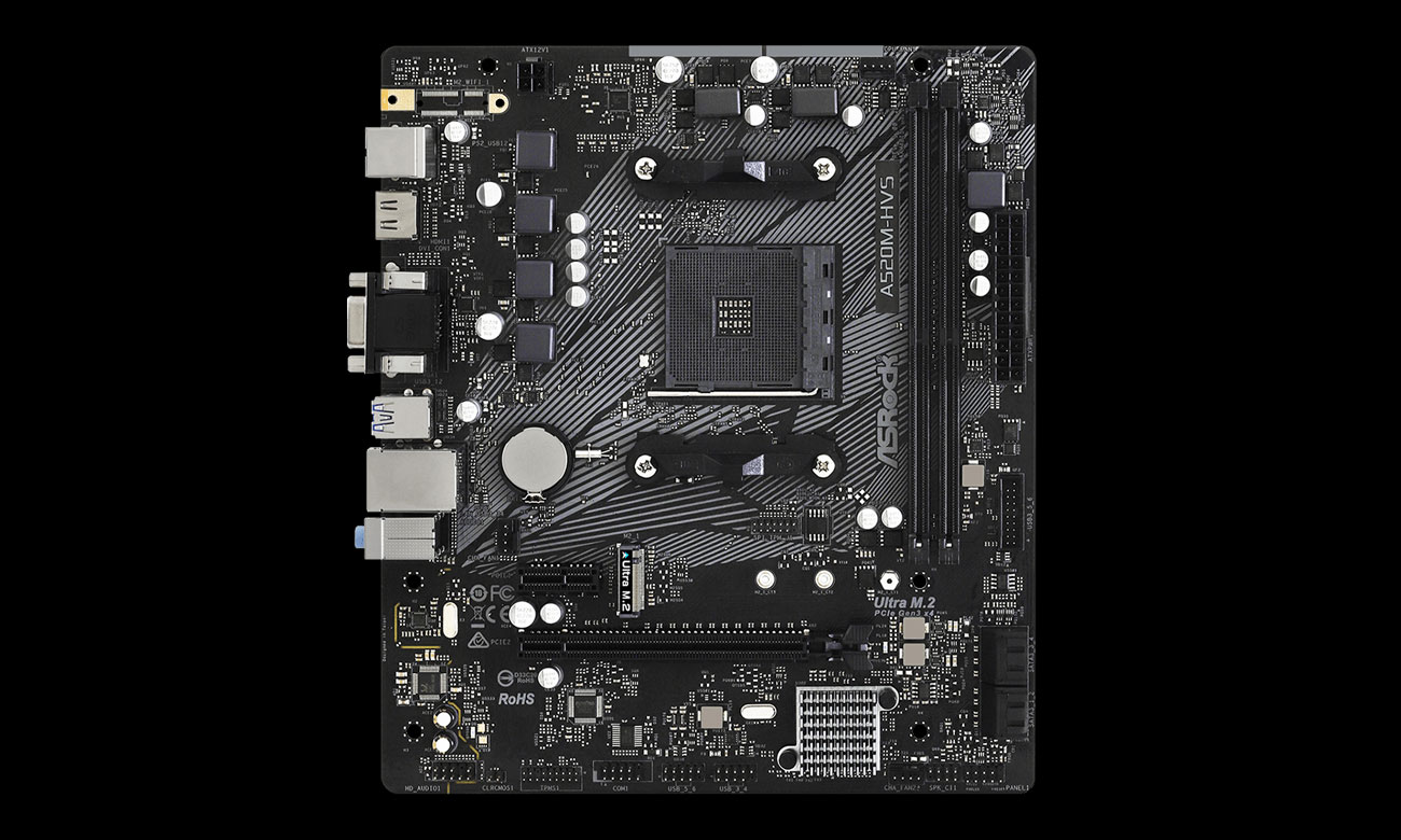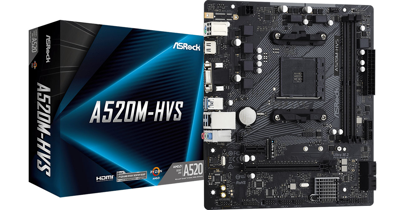 Das A520M-HVS verfügt über einen PCIe Gen3 x4 Ultra M.2-Anschluss, der Datenübertragungen von bis zu 32Gb/s ermöglicht, sodass du die schnellsten SSDs nutzen kannst. Darüber hinaus unterstützt es auch SATA III 6 Gb/s M.2 Speichermedien.