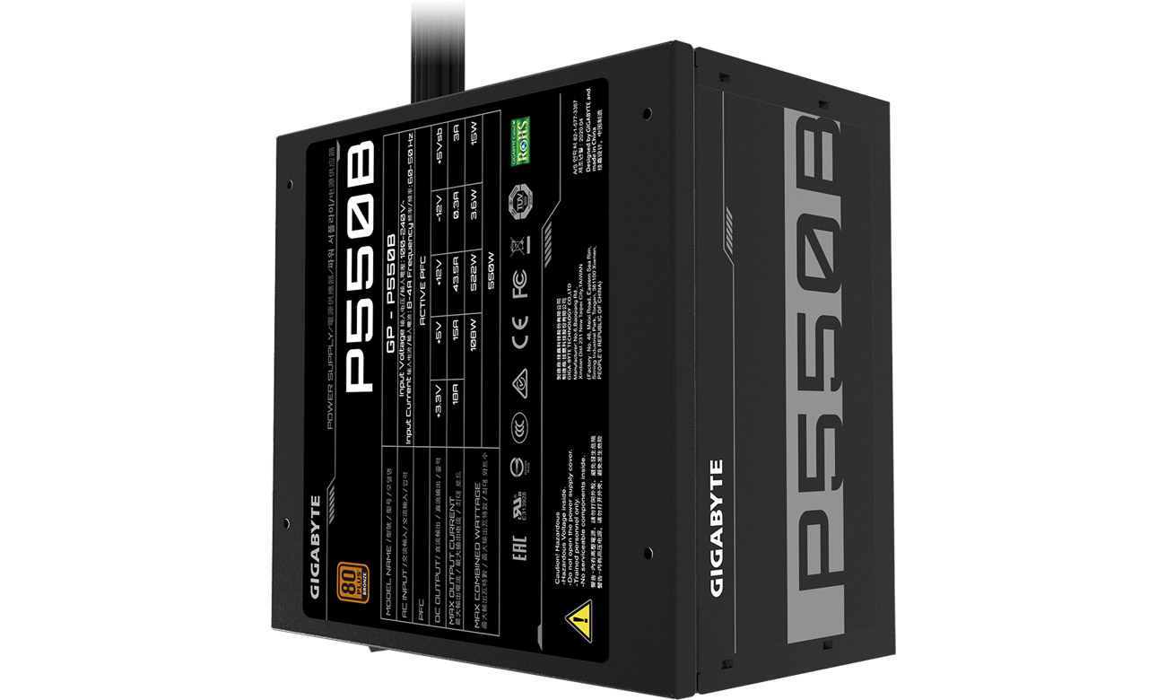 Ausgestattet mit fortschrittlichen Technologien ermöglicht das 550-Watt-Design von Gigabyte eine stabile Stromversorgung auch für modernste Hochleistungsrechner. Wenn es auf perfekte Stabilität und minimale Geräuschentwicklung ankommt, greife zum Gigabyte P550B, das zusätzlich mit einer robusten, schwarz geflochtenen Verkabelung ausgestattet ist. Das Gigabyte P550B ist außerdem 80 PLUS Bronze-zertifiziert für bessere Energieeffizienz, geringere Verlustleistung und folglich niedrigere Betriebstemperaturen.