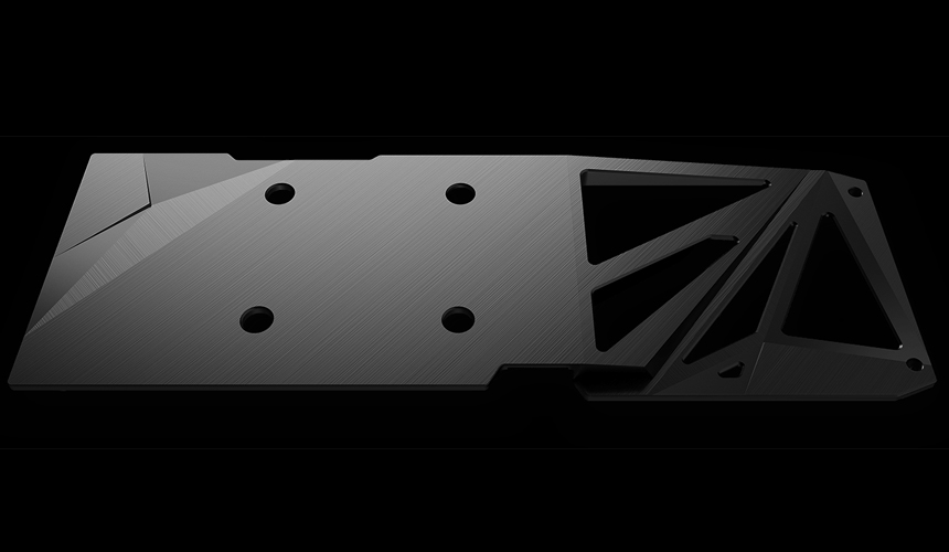 Die stabile Backplate erstreckt sich über die gesamte Länge der Grafikkarte und verstärkt diese.