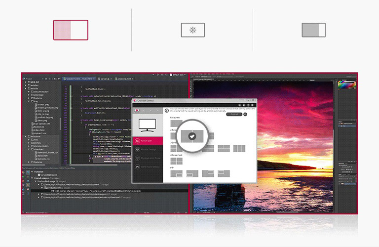 On Screen Control ist eine benutzerfreundliche Benutzeroberfläche. Das Bildschirmmenü ist einfach und intuitiv. Mit wenigen Mausklicks kannst du den Arbeitsbereich aufteilen oder die Grundeinstellungen des Monitors definieren.