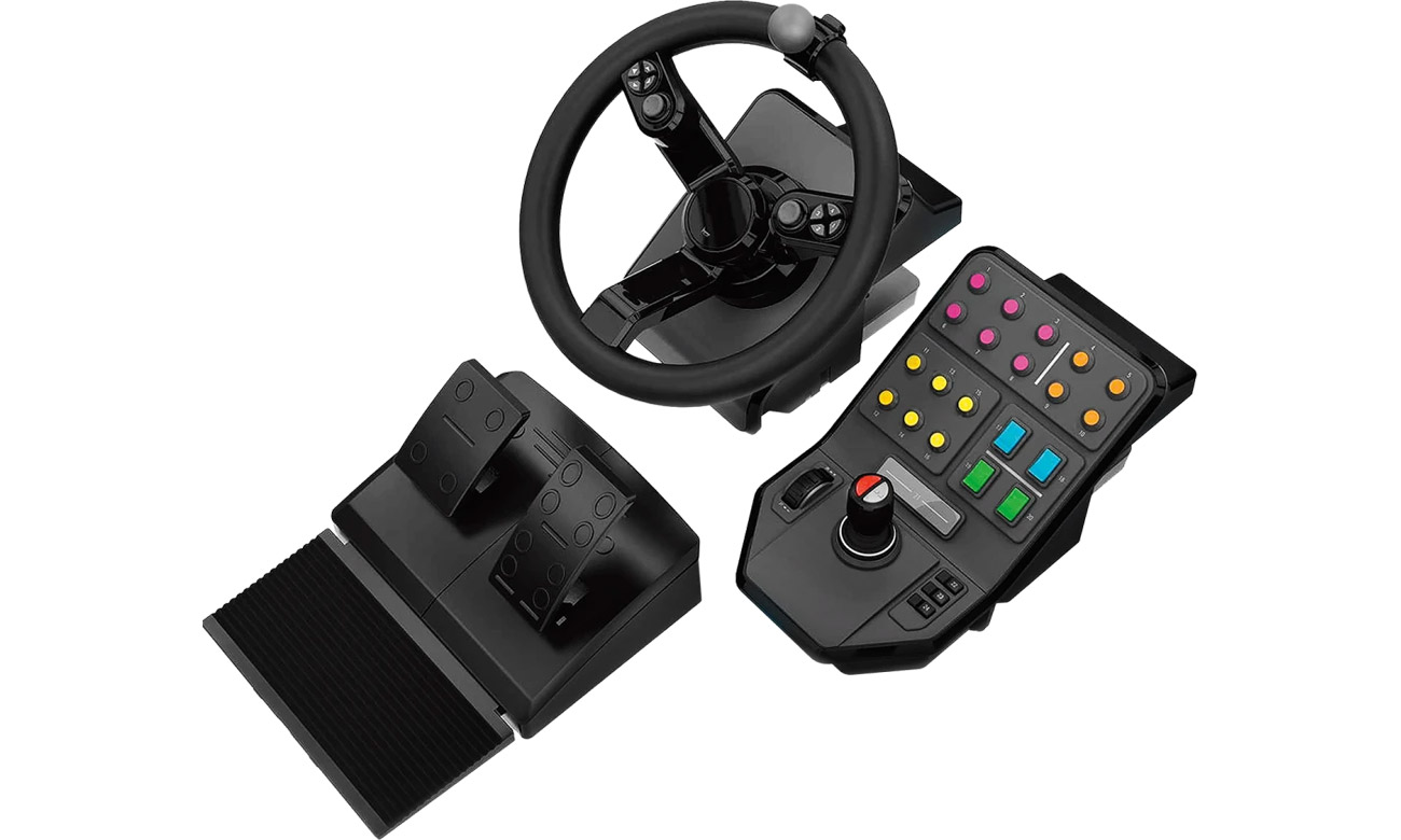 Das Logitech G Bundle für schwere Maschinen enthält eine beeindruckende Auswahl an spezialisiertem Farm-Simulationszubehör. Es bietet alle unverzichtbaren Tools: Ein um 900 Grad drehbares Lenkrad, robuste Pedale und eine Seitenkonsole für realistisches Spielvergnügen. Dank unserer Zusammenarbeit mit GIANTS Software und der Farm-Simulations-Community (also Dir!) machen Feldbewirtschaftung, Viehzucht und der Verkauf von Hofprodukten jetzt noch mehr Spaß. Und das gilt nicht nur für das Bedienen schwerer Maschinen! Mit im Lenkrad integrierten Sticks und Tasten kannst du auch alle auf der Farm anfallenden Aufgaben wie etwa Sägearbeiten ausführen. All das verwandelt Farm-Simulationen zu einem aufregenden Abenteuer. Das Bundle für schwere Maschinen wurde auf der Basis von Feedback aus der Community noch verbessert und ist bereit für die Herausforderungen der Arbeit auf dem Bauernhof.