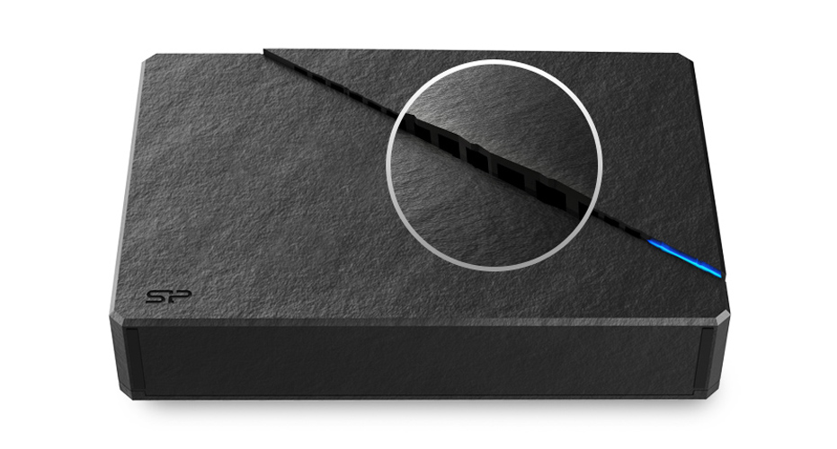 Die Stream S07 wurde sorgfältig nach einem Stein, ein Symbol für Haltbarkeit und Langlebigkeit, entworfen. Und genau wie ein Stein, der im Laufe der Zeit verwittert ist, hat sie einen Riss. Aber dieser Riss ist beabsichtigt - er hat einen doppelten Zweck. Erstens dient er als Belüftungsquelle, um das Laufwerk kühl zu halten. Zweitens dient er mit den eingebauten neonblauen LED-Leuchten als Übertragungsstatusanzeige, die durch den Riss läuft und ihn während der Datenverarbeitung beleuchtet.