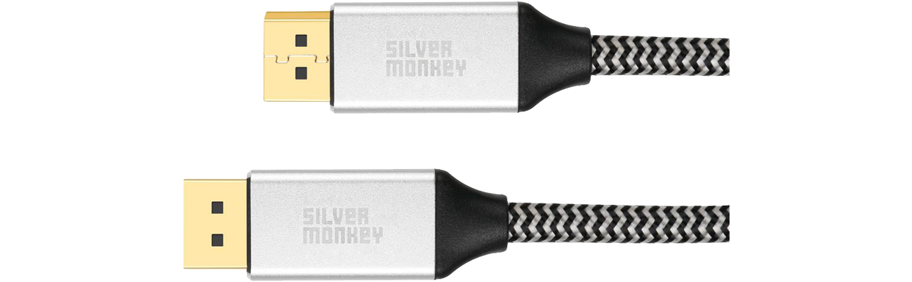 Mit dem Silver Monkey DisplayPort 1.4-Kabel kannst du dich zurücklehnen und eine realistisches Bild selbst bei Auflösungen von 8K 60 Hz und 4K 120 Hz genießen. Das Silver Monkey DisplayPort 1.4-Kabel hat vergoldete Stecker, um Rauschen zu vermeiden. Die Nylonumflechtung gewährleistet zudem eine lange Haltbarkeit und Festigkeit, so dass dein Kabel länger halten wird.