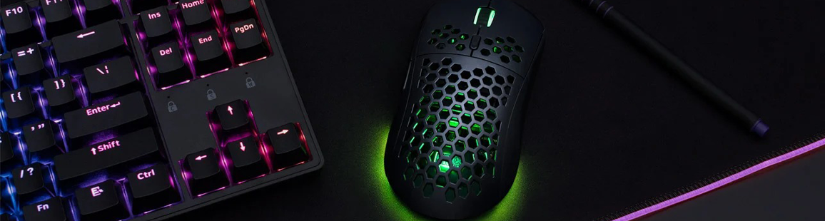 Das schwarze Gehäuse wurde in Anlehnung an die Honigwabenstruktur gefertigt. Dadurch konnte nicht nur das Gewicht auf nur 90 g reduziert werden, sondern auch die Belüftung der Hand bei stundenlangem Spielen sichergestellt werden. Du musst dir keine Sorgen mehr machen, die Maus mit schwitzigen Händen zu halten, auch dank des ergonomischen Designs, das einen festen Griff garantiert. Die Unterseite ist mit Teflongleitern ausgestattet, die ein reibungsloses Gleiten der Maus auf verschiedenen Oberflächen gewährleisten.