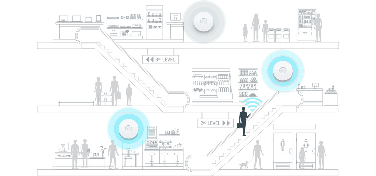 Es bietet Nutzern nahtloses Streaming, wenn sie sich in der Nähe bewegen, indem ihre Geräte automatisch zu Access Points mit optimalem Signal wechseln. Intelligente Optimierung wählt den besten Weg zwischen den EAP-Access Points, und Self-healing sorgt dafür, dass sie auch dann online bleiben, wenn ein Access Point ausfällt.