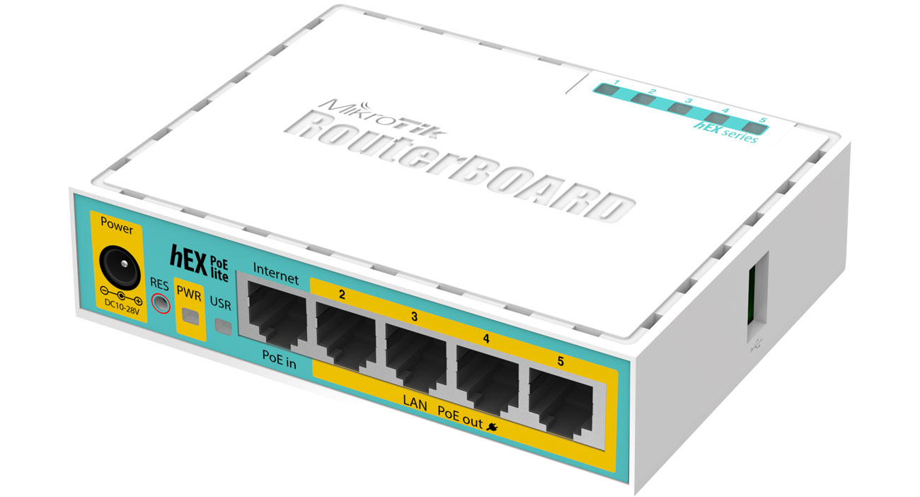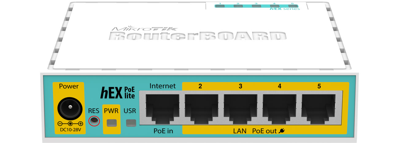 Trotz seiner kleinen Abmessungen ist der MikroTik hEX PoE außerordentlich benutzerfreundlich und leistungsfähig dank eines 650 MHz Prozessors. Er unterstützt fortgeschrittene Funktionen, die durch das RouterOS Level 4 bereitgestellt werden. RB750UP-R2 unterstützt auch PoE-Versorgung mit einer maximalen Stromstärke von 1 A pro Port (2 A für das gesamte Gerät). Es kann sowohl über den mitgelieferten DC-Adapter als auch über den PoE-In-Port mit Strom versorgt werden.
