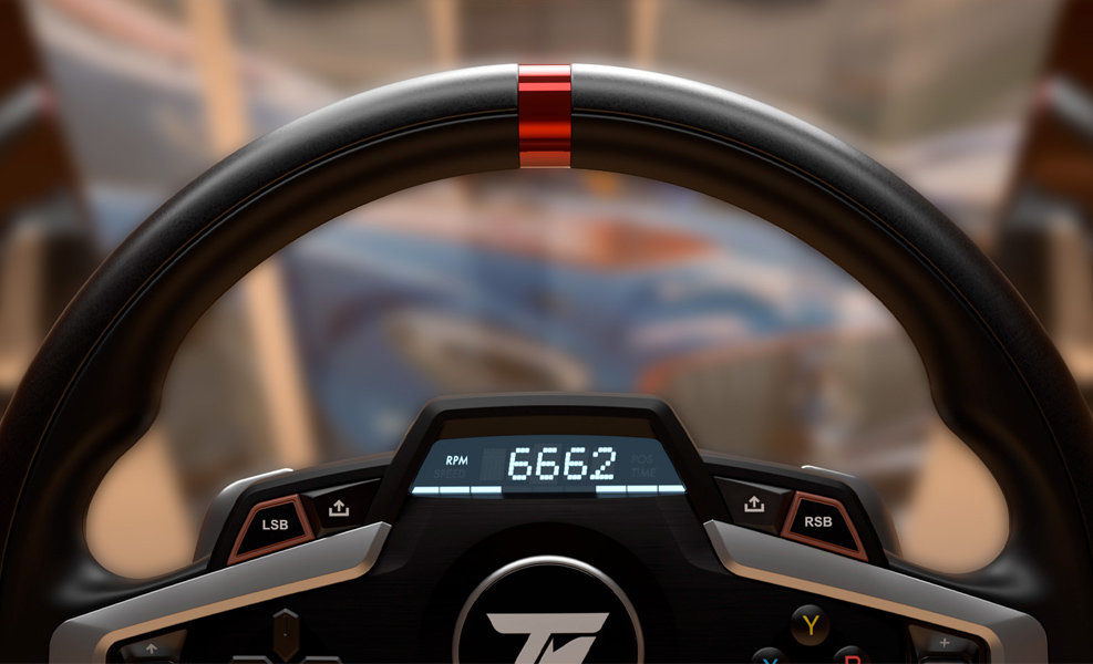 Das T248 bietet eine Auswahl von mehr als 20 verschiedenen Anzeigemöglichkeiten auf dem eingebauten Display: manuelle Anpassung einer Reihe von Einstellungen (Auswahl des Force-Feedback-Typs, des Rotationswinkels des Lenkrads usw.) oder die Auswahl von Telemetrie-Informationen (Übersetzungsverhältnis, Drehzahl, beste Rundenzeit des Spielers usw.) durch den Benutzer.