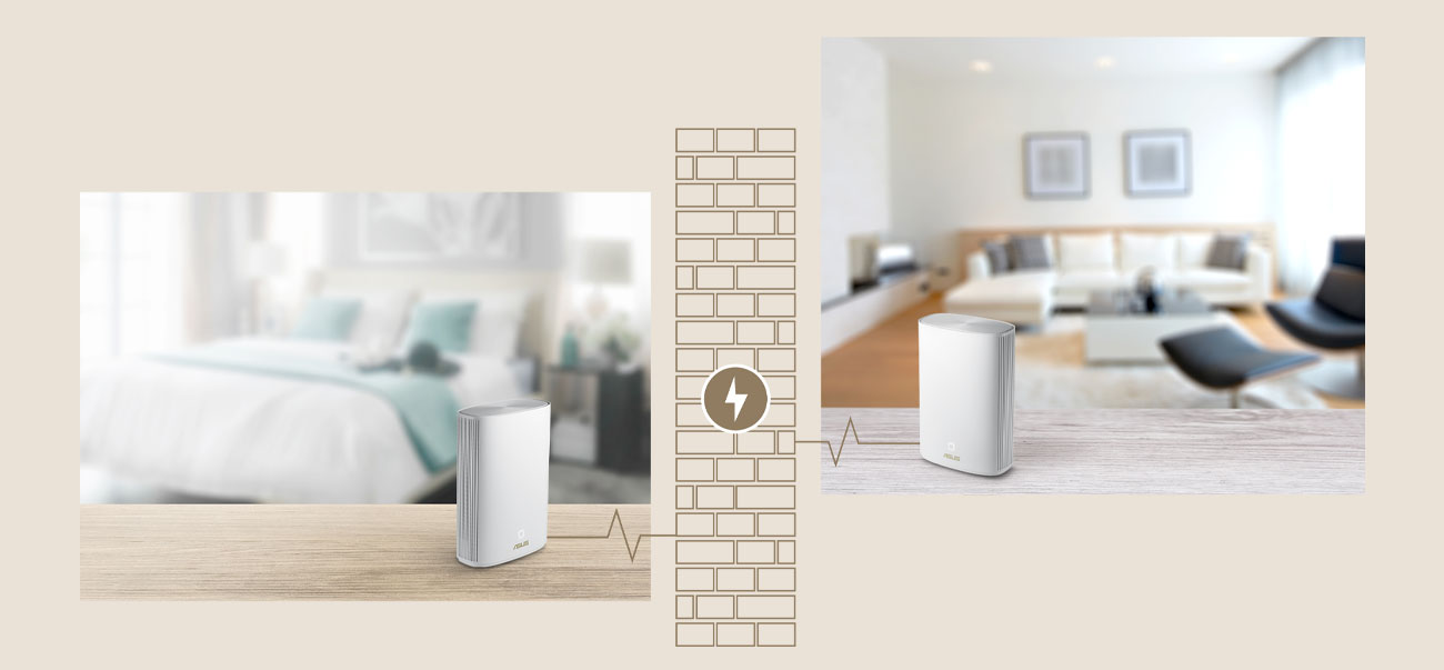 Der ASUS ZenWiFi AX Hybrid XP4 ist ein AX1800 WiFi Router mit integrierter 1300 Mb/s HomePlug AV2 Powerline-Technologie. Damit kannst du ein drahtloses Netzwerk auch an Orten einrichten, an denen dicke Wände die Übertragung von WiFi-Signalen erschweren. Dabei stehen dir drei alternative Verbindungsoptionen zur Verfügung: Powerline, Ethernet und WiFi, die manuell oder basierend auf der Verbindungsqualität ausgewählt werden können.