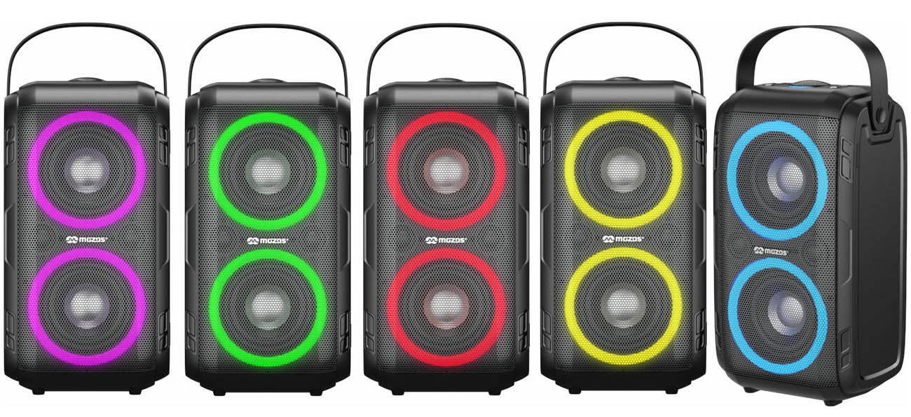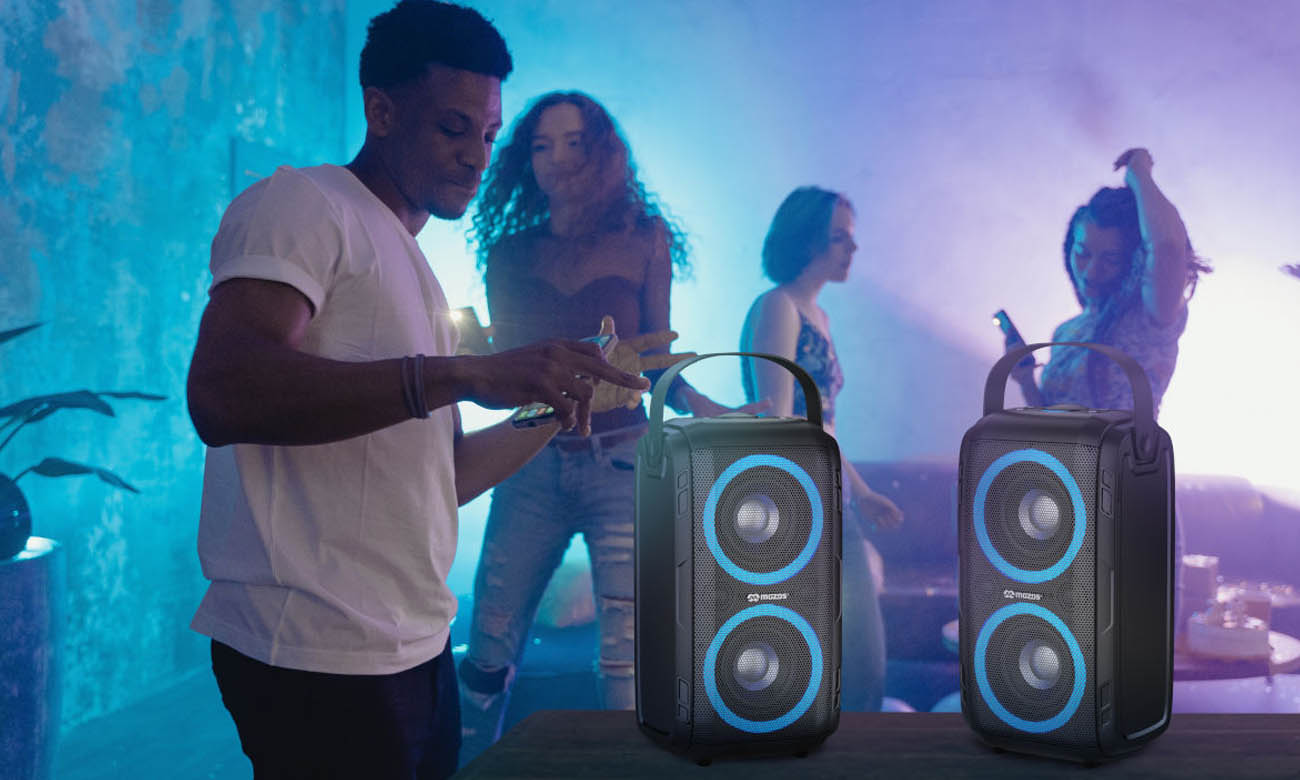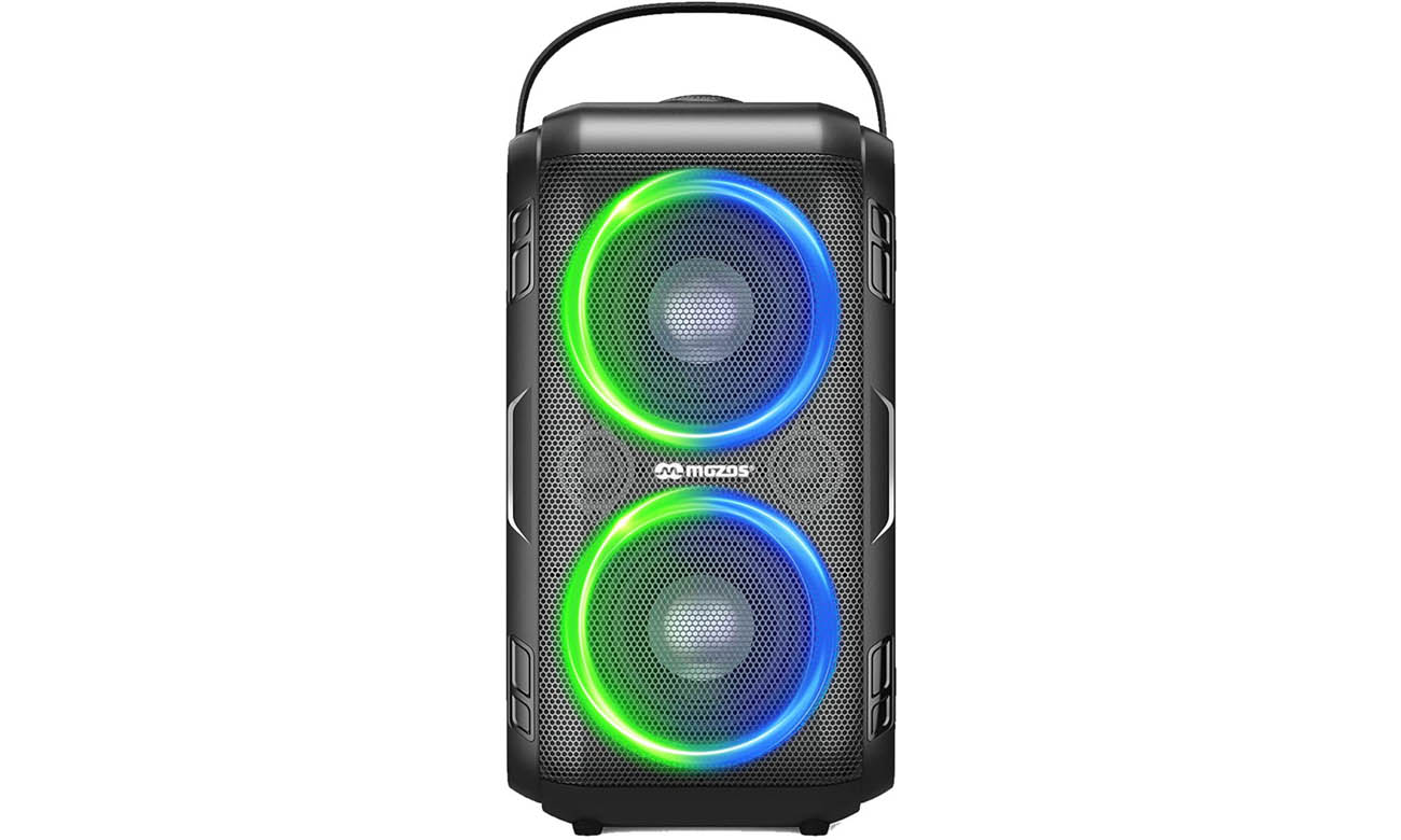 Der tragbare Lautsprecher Mozos Party One bietet nicht nur exzellenten Klang. Er ist auch mit LED-Beleuchtung ausgestattet, die jeder Party Farbe verleiht. Du kannst zwischen 5 Farben wählen, die im Rhythmus der Musik pulsieren werden. Das Gerät kann horizontal und vertikal stehen, und ein praktischer Griff erleichtert das Tragen. Der leistungsstarke Akku ermöglicht eine Betriebsdauer von 3 bis 10 Stunden, abhängig von der Lautstärke. Der Mozos Party One verfügt auch über den TWS-Modus, mit dem du einen zweiten Lautsprecher anschließen kannst, um noch mehr Leistung zu erzielen.